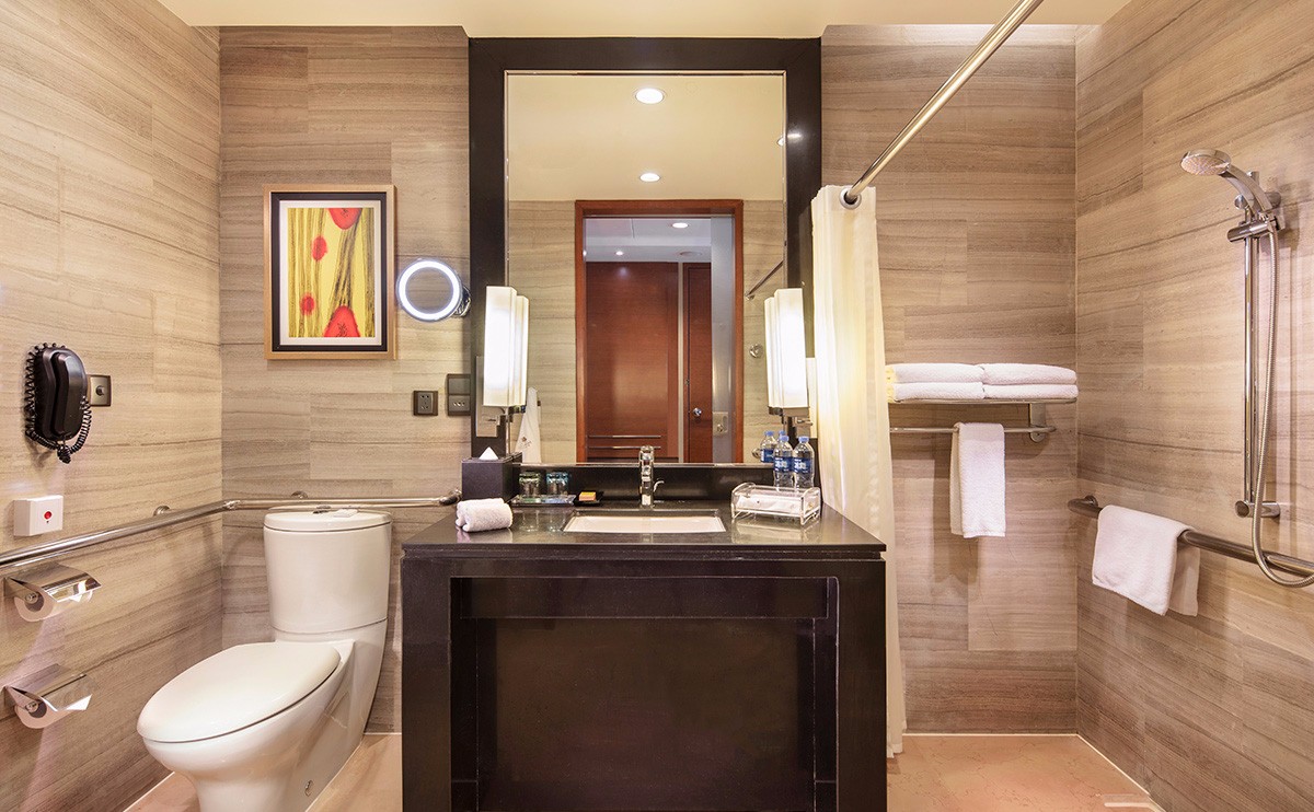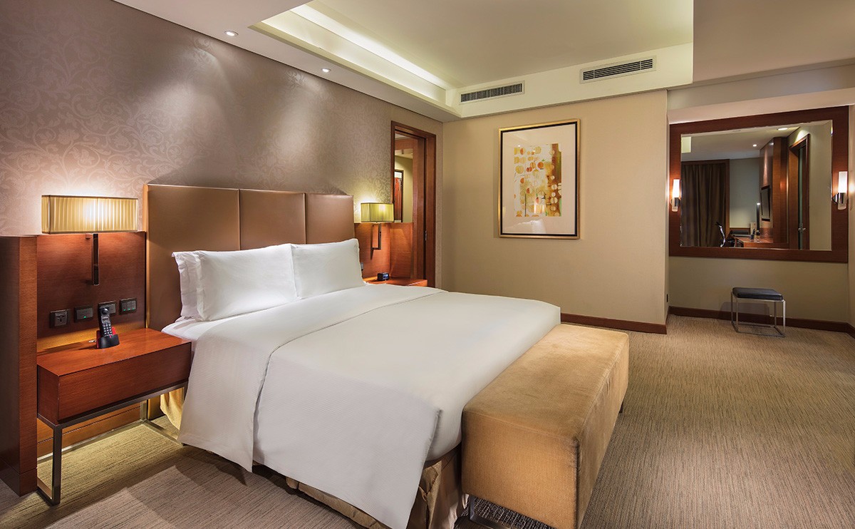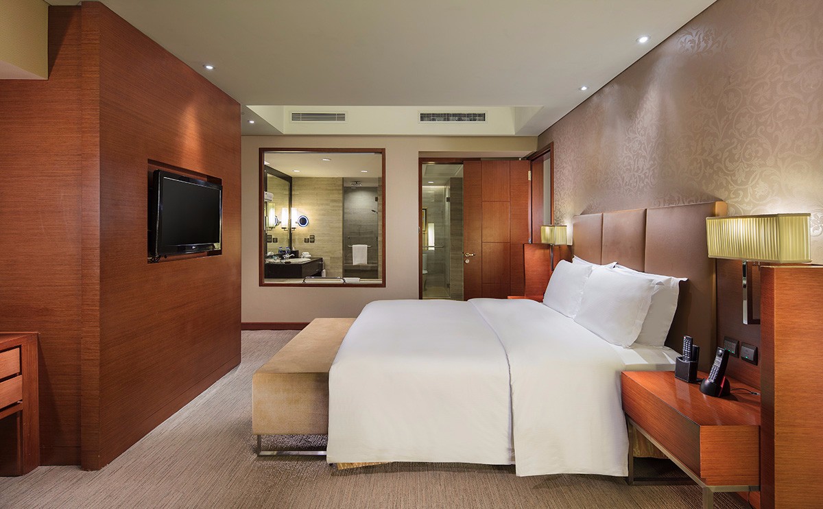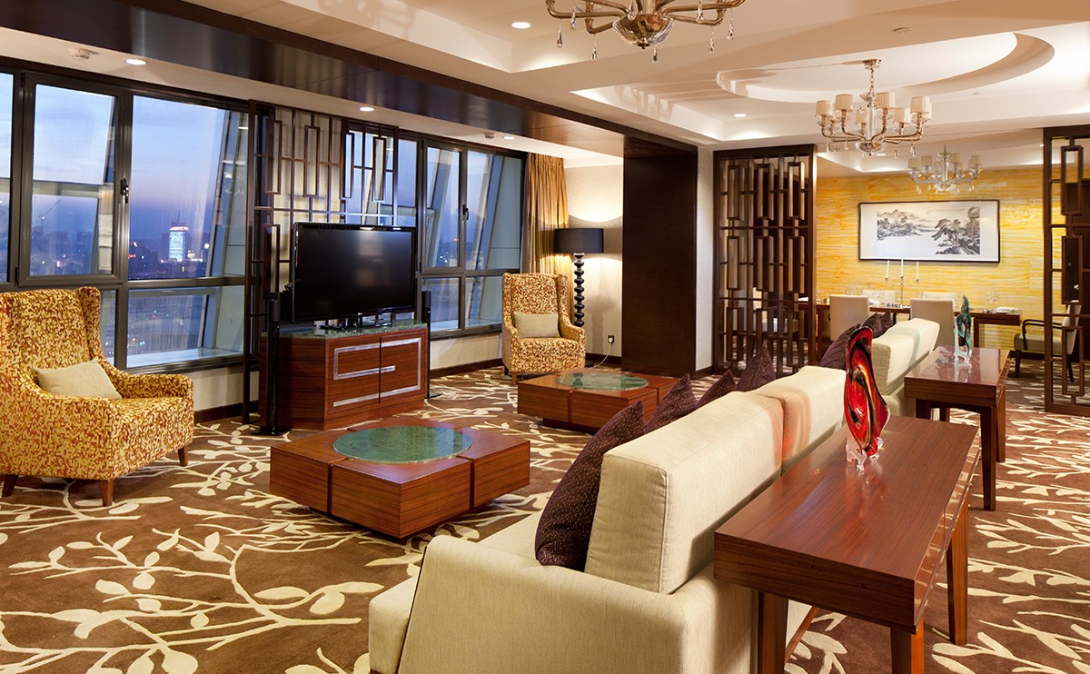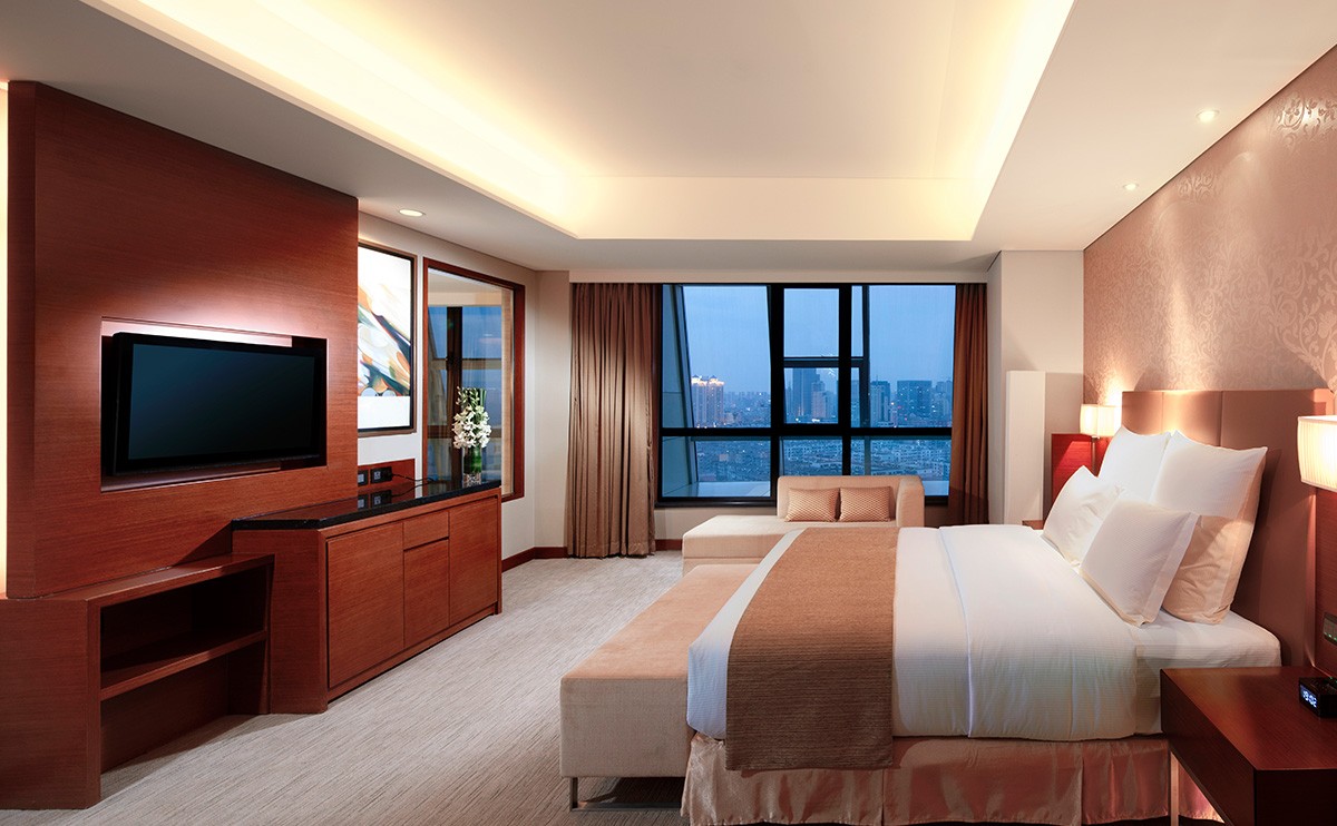 客房內(nèi)配備高速互聯(lián)網(wǎng)連接及無線網(wǎng)絡覆蓋、獨立的工作空間、42寸大屏幕液晶電視、寬敞舒適的衛(wèi)生間擁有獨立的淋浴間及浴缸,入住行政套房可尊享行政樓層禮遇。