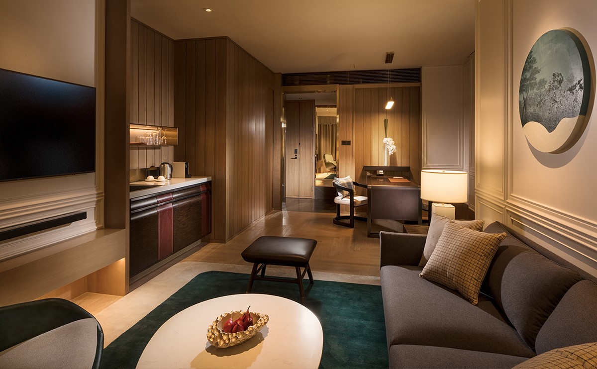 另外再搭配行政酒廊更為便捷的尊貴體驗(yàn),入住總統(tǒng)套房是舒逸、奢華與雅致品位的理想詮釋。