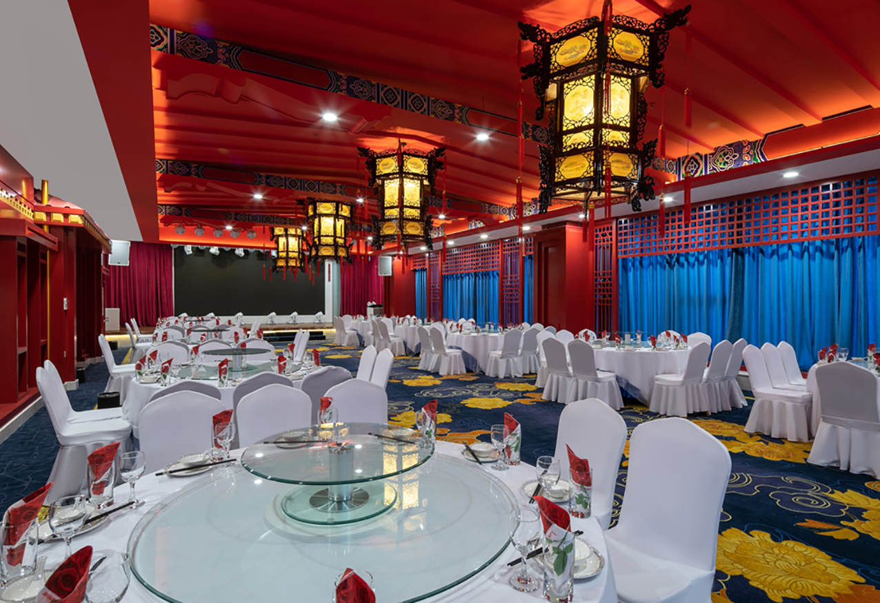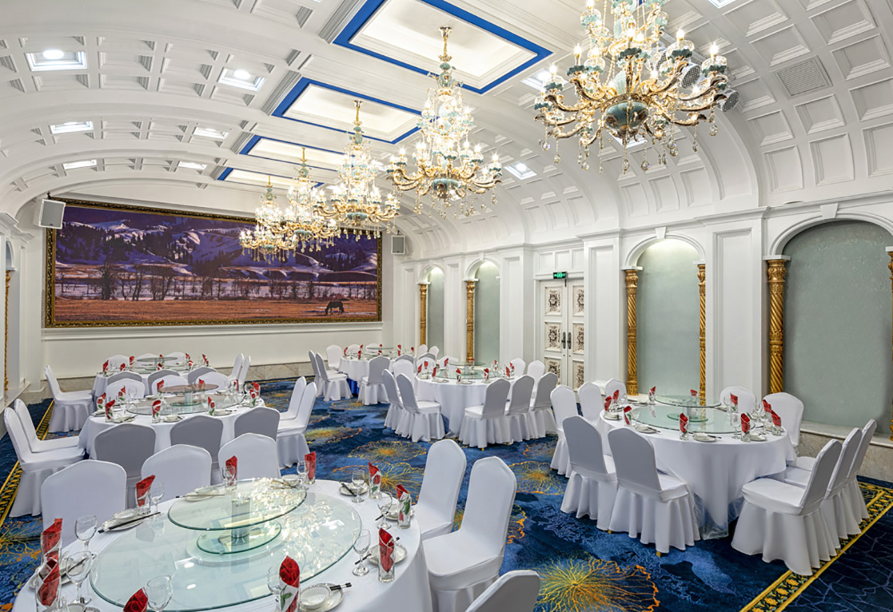 單廳可承接60-500人的宴會(huì),整間宴會(huì)廳可同時(shí)承擔(dān)1800余人同時(shí)用餐。