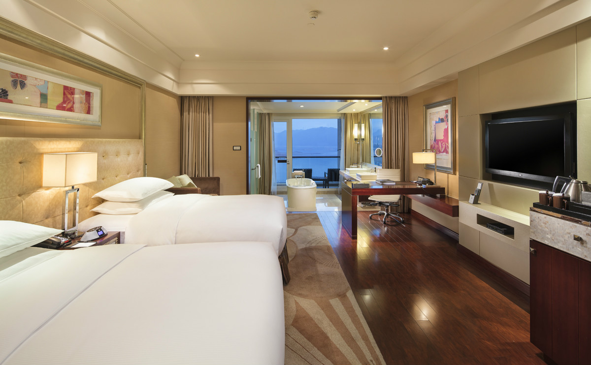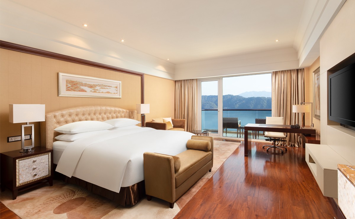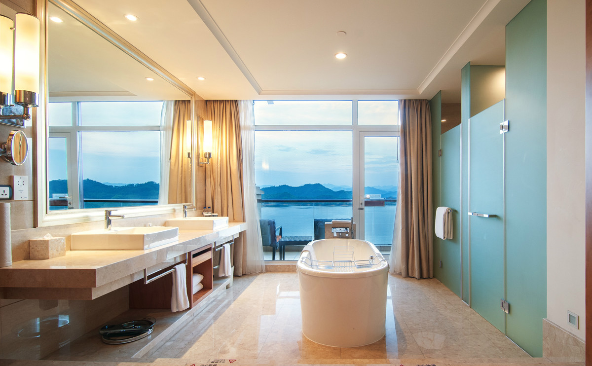 客房布置優(yōu)雅,時(shí)尚的豪華湖景套房帶有寬大敞亮的私人陽(yáng)臺(tái),更可觀180度千島湖美景。寬敞的客廳配備了超大工作區(qū),高速無(wú)線上網(wǎng)方便您網(wǎng)上辦公。