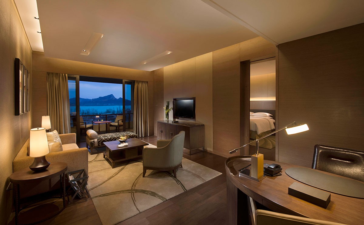 酒店515間豪華客房與套房均設(shè)有私人陽臺,客房現(xiàn)代典雅、寧靜舒適,透過落地玻璃窗還能飽覽嚴(yán)西湖撼動人心的秀美景致。