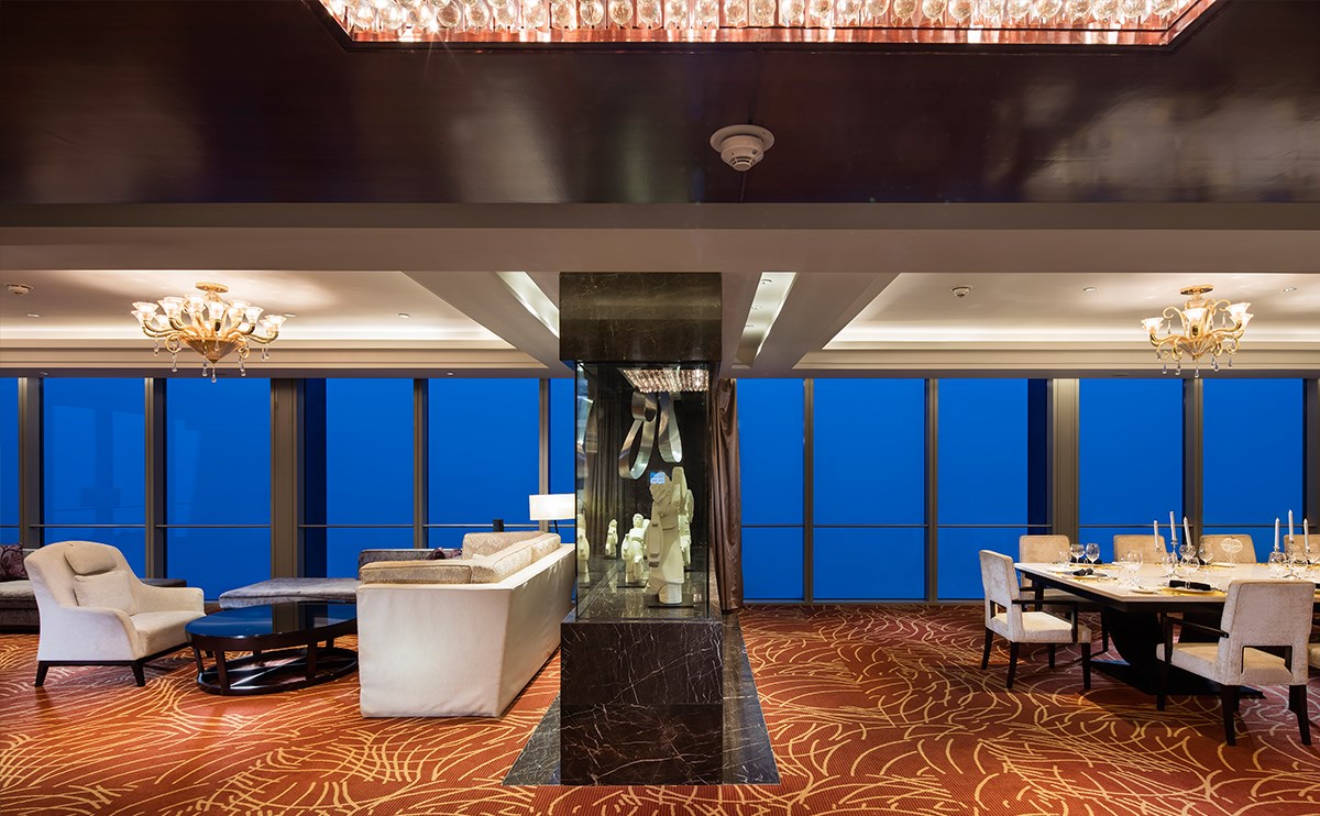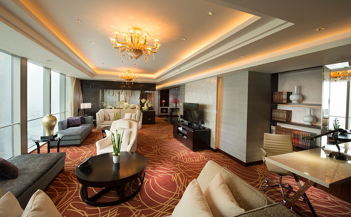 全景落地玻璃窗讓您隨心暢享遠(yuǎn)處的群山和近處的城市美景。房間配有全套智能操控系統(tǒng)和感應(yīng)設(shè)施,私人管家可根據(jù)您的喜好,為您設(shè)定專(zhuān)屬于您的房間氛圍。
