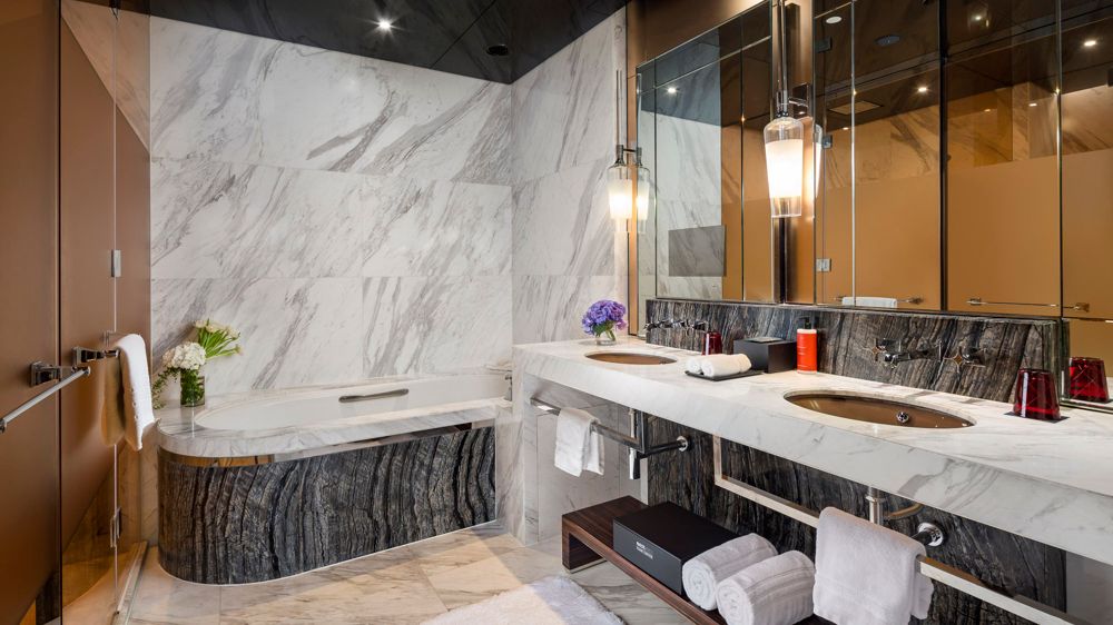 設(shè)有獨(dú)立浴缸和淋浴的大理石浴室,客房配有書(shū)桌和躺椅,滿足您的工作或放松需求。為商務(wù)繁忙的旅客提供優(yōu)雅宜人的入住體驗(yàn)。