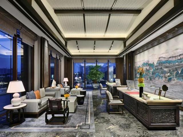 別墅內(nèi)依舊是中式風(fēng)情,從畫作、燈飾、桌椅、杯具,到地毯、門窗、門把手…每個(gè)細(xì)節(jié)都呼應(yīng)著官邸的中式設(shè)計(jì),無處不奢華。