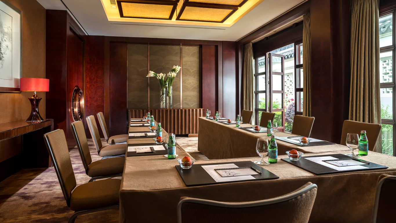 自然光線充分流灑,坐擁室外綠化花園的優(yōu)美景觀,適合舉辦會議、研討會、酒會或私人晚宴。