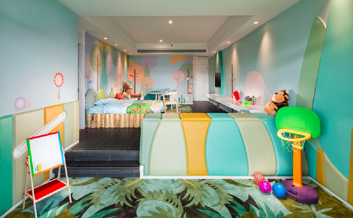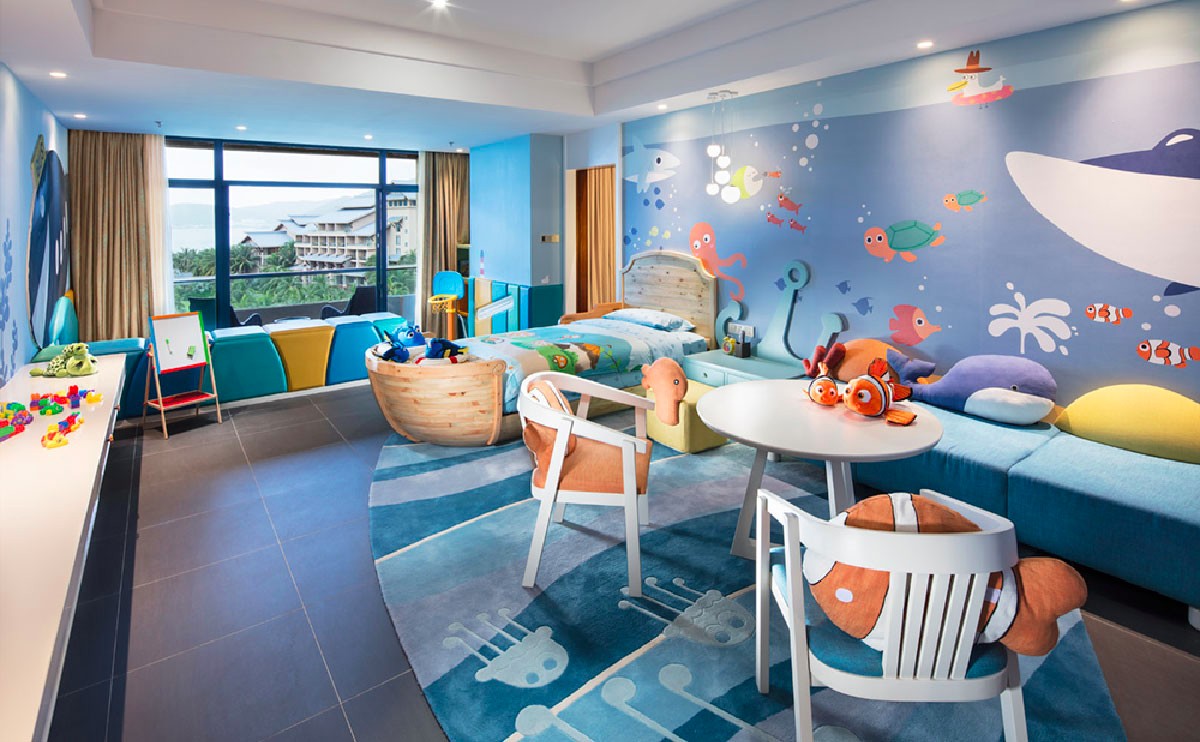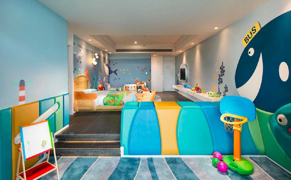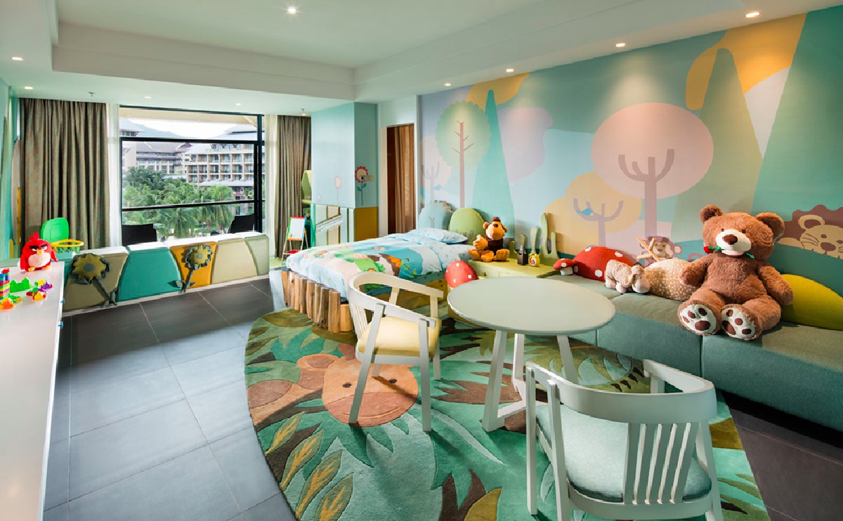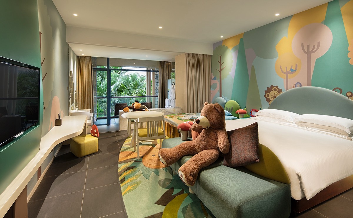 酒店推出海洋世界藍色系和童話森林綠色系家庭房及套房,備有兒童專用的盥洗區(qū)和游戲區(qū),讓孩子們住在美妙的動漫空間,暢游在無限想象空間里,讓帶孩子出游的家庭感受室內、室外雙收獲天倫之樂!