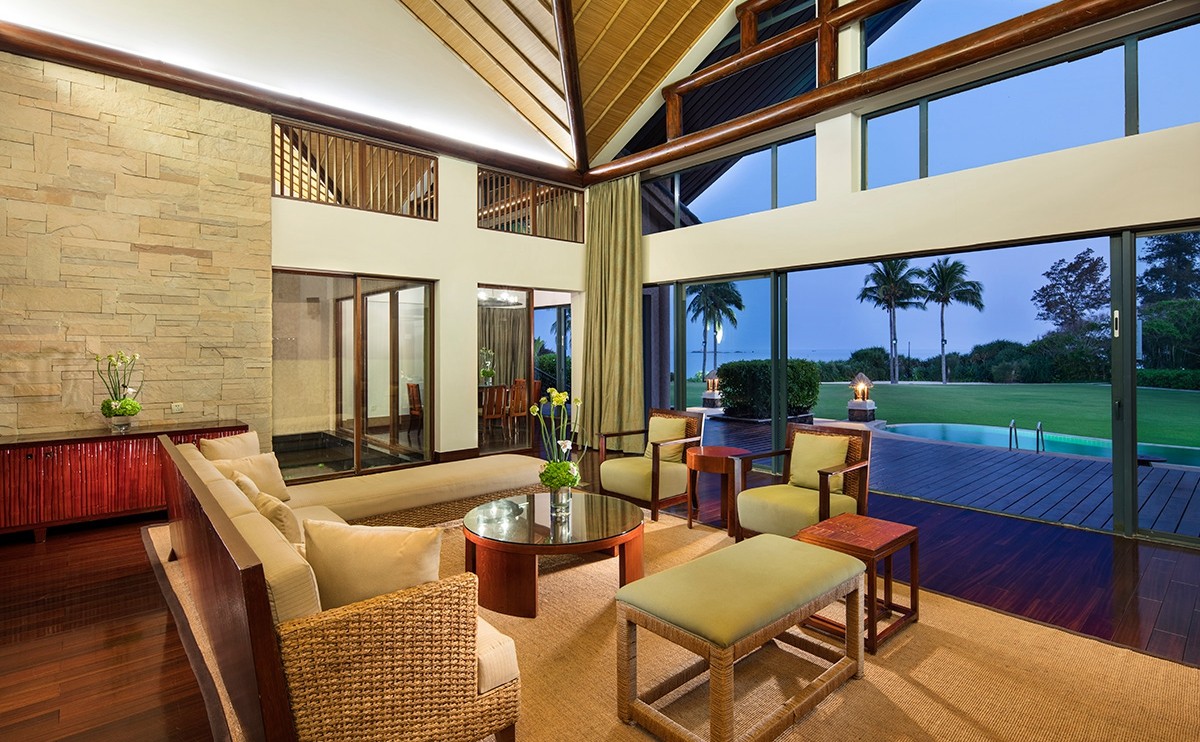 豪華的海灘別墅布置優(yōu)雅,將現(xiàn)代化中國南部的設計風格同海南本地特色相結合。