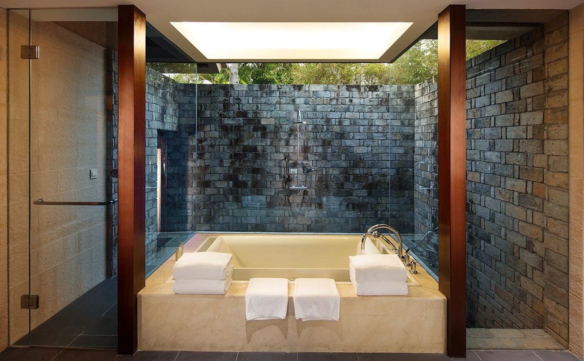 室內面積約為58平米的花園泳池房布置優(yōu)雅,開放式浴室內置圓形浴缸或靠近陽臺的浴缸,可從客房陽臺直接進入泳池區(qū)域。