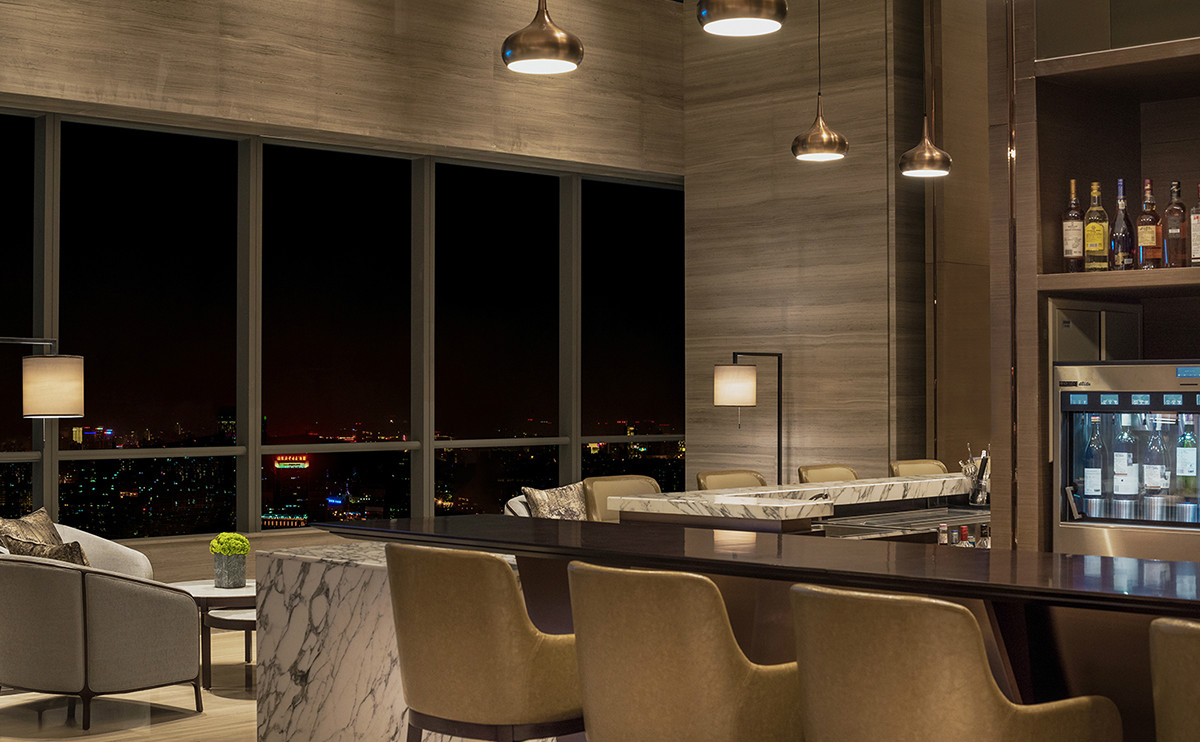在總統(tǒng)套房中盡享卓越奢華的體驗,邀請您的客人共享富有格調(diào)的客廳,餐廳,蒸汽水療浴及按摩浴缸,免費使用行政酒廊及24小時貼身管家服務(wù),房間中特備咖啡機和藍牙立體音響系統(tǒng)。