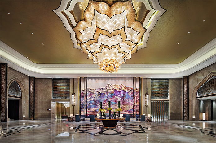 酒店在呈現(xiàn)國際化空間布局的同時,將中亞風(fēng)格等元素貫穿于設(shè)計之中,所有客房內(nèi)均擺放著一本散發(fā)千年墨香的《禮記》,浸潤在這本記錄著東方典章制度、禮義道德的仕者必讀之書里,令客人商海馳騁之余,以高雅風(fēng)范卓爾不群。