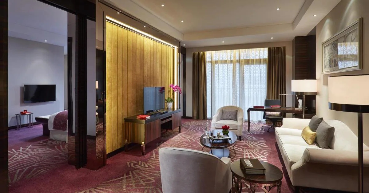 總統(tǒng)套房 (PRESIDENTIAL SUITE REDLEVEL):沉浸在 355 平方米的天堂,為美利亞的精選 VIP 而設(shè)計(jì)。客人可以在寬敞的套房?jī)?nèi)欣賞人工湖和酒店花園的壯麗全景??偨y(tǒng)套房讓客人體驗(yàn)可與中國(guó)景致相媲美的精致之處。