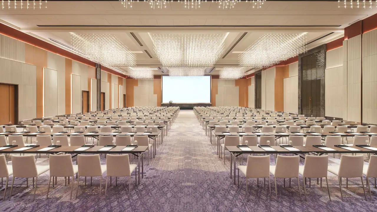 酒店的大宴會(huì)廳層高8米,可容納60桌宴席,配有先進(jìn)的視聽(tīng)設(shè)備包括5.6米*10 的 嵌入式LED屏,場(chǎng)地可進(jìn)入車(chē)輛; 總面積達(dá)648平方米的沙龍廳配有全景落地窗,引入充沛的自然光線。