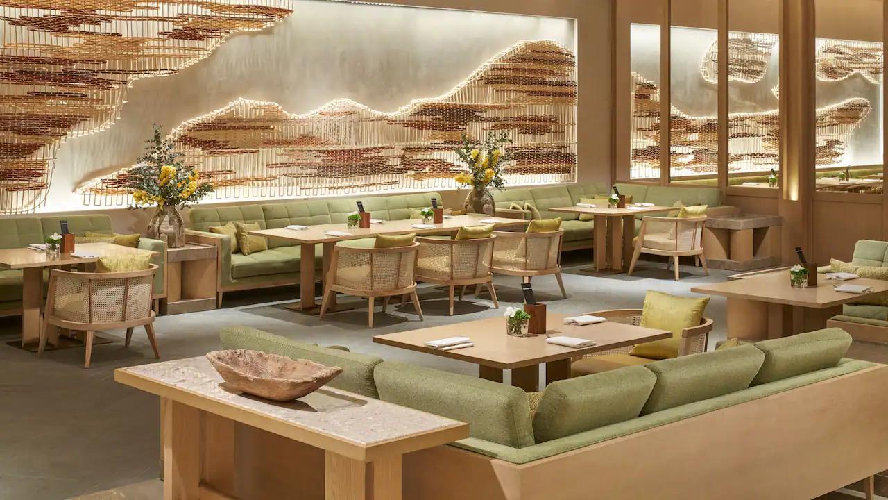 位于酒店一層中庭的大堂酒廊,融合自然元素的裝飾風(fēng)格在綠植的掩映下,配合自然光線,營(yíng)造在繁華都市偏安一隅的氛圍。