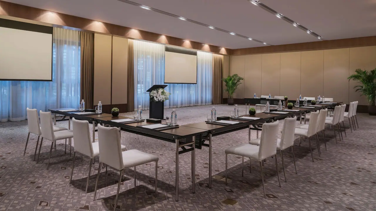 酒店的靈活空間包括一個(gè)適合舉辦大型會(huì)議和活動(dòng)的高天花板的 1,220 平方米的凱悅宴會(huì)廳,一個(gè) 405 平方米的凱悅沙龍,和一個(gè)獨(dú)立的兩層樓展館,其中設(shè)有 9 個(gè)多功能廳。