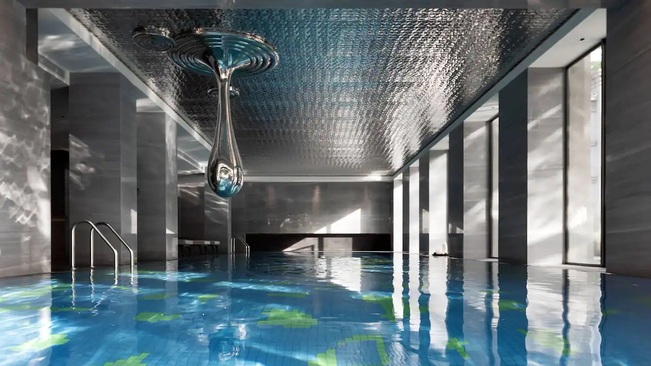 漫步在受古代江干建筑啟發(fā)的中央庭院中,來到充滿現(xiàn)代藝術(shù)和美利堅風格的未來主義泳池。