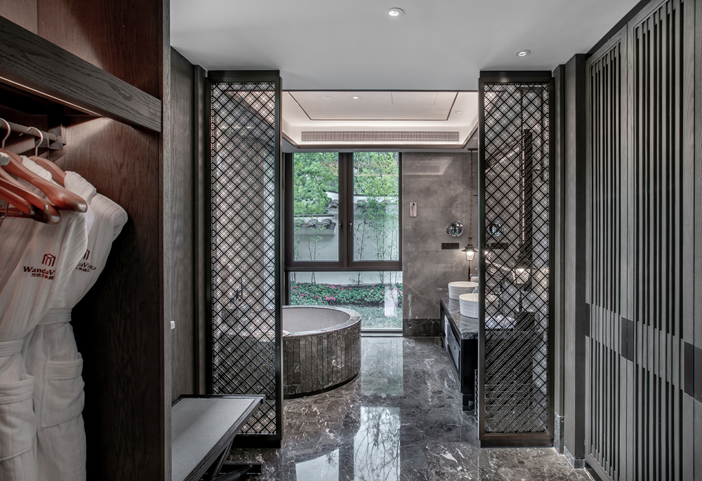 客房浴室干、濕分離并配備步入式雨林花灑及浴缸,所有設(shè)施均配備完備。