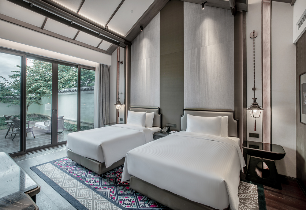 酒店的客房分了幾間別墅,每間別墅設(shè)有1間大床房臥室、客廳及面積15-24平方米花園式景觀庭院,院內(nèi)綠樹成蔭,四季鮮花盛開。