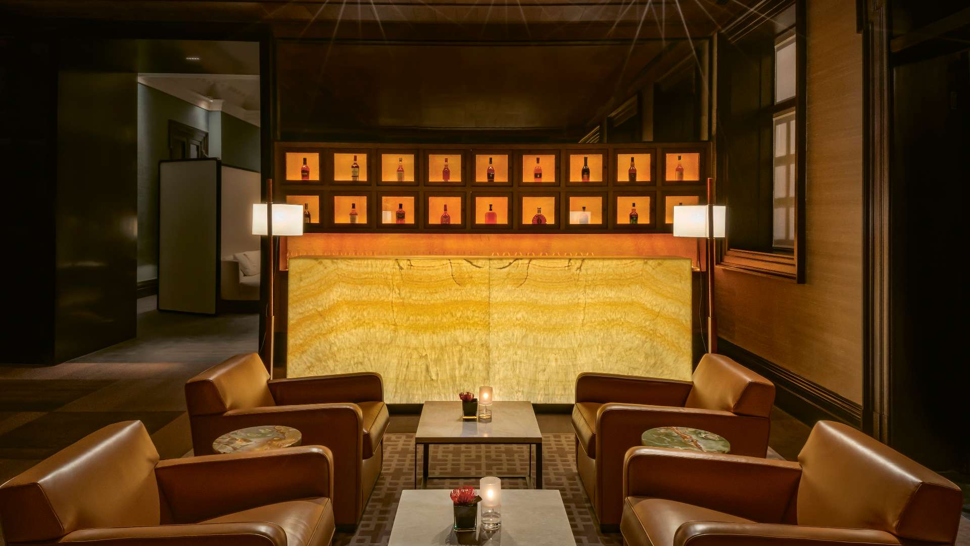 Bulgari酒吧的核心橢圓形柜臺(tái),靈感來(lái)自羅馬著名的Fontana della Barcaccia,已成為寶格麗酒店系列的標(biāo)志,并在每家酒店用不同的材料重新構(gòu)想。