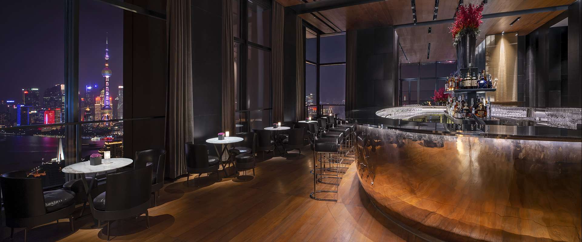 寶格麗酒吧與Il Ristorante-Niko Romito共用47樓,在外灘河濱和浦東天際線(xiàn)的全景背景下,閃閃發(fā)光。