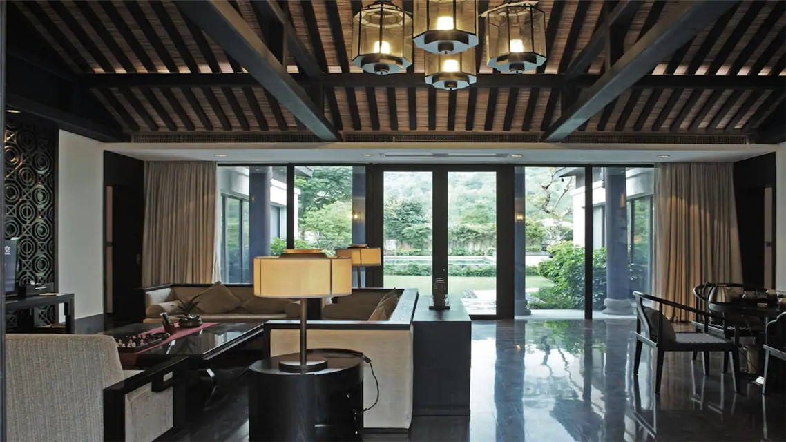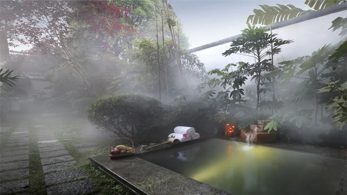 行館共有17棟別墅,木門(mén)鑲刻著“云門(mén)、扶云、涵舍”。每一棟私人院落設(shè)計(jì)禪風(fēng)詩(shī)意,強(qiáng)調(diào)貼近自然,以傳統(tǒng)文化及茶文化等釋義自然禪,一扇門(mén)、一泓溫泉、一盞香茶、一方靜謐。