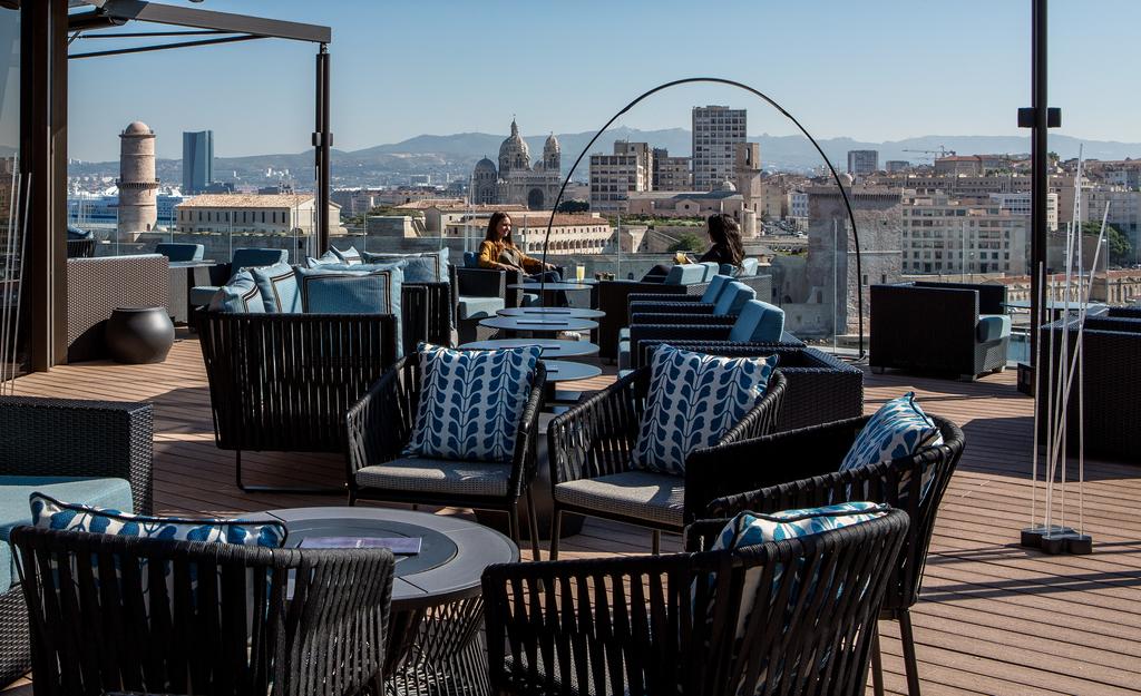 Sofitel Marseille Vieux-Port酒店配有3個俯瞰著馬賽舊港(Marseille's Old Port)的露臺。