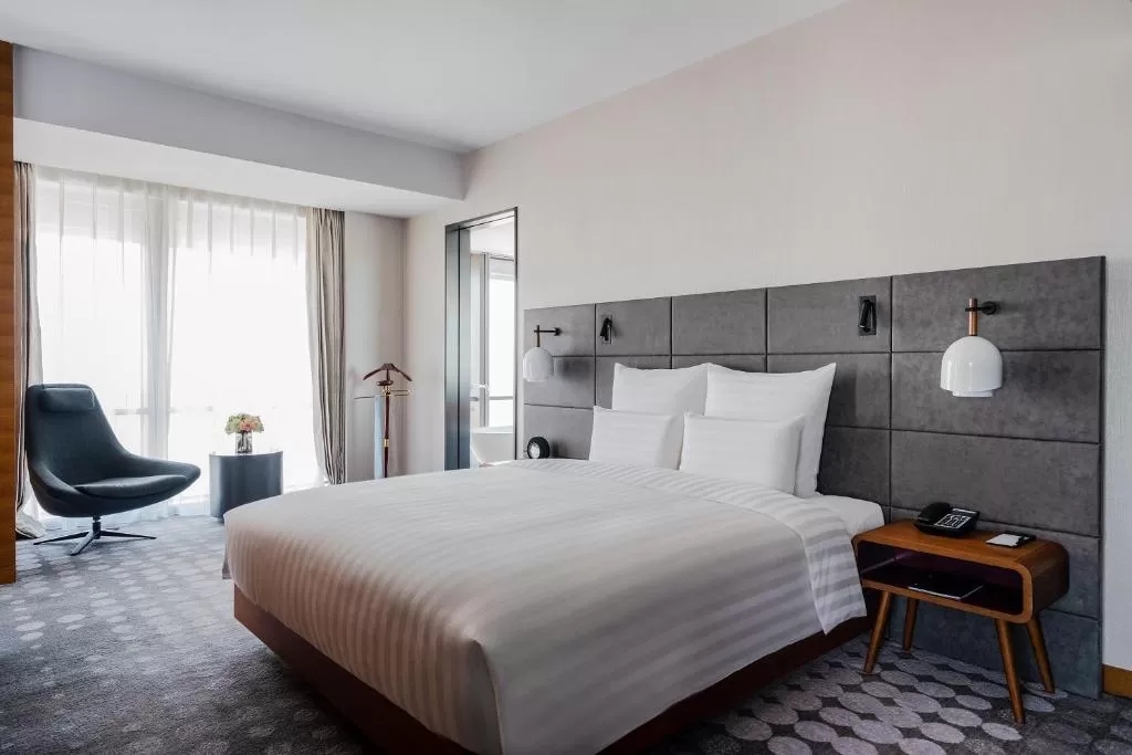 酒店設(shè)有265間客房與套房,并配備鉑爾曼專(zhuān)供的環(huán)保床上用品、無(wú)線藍(lán)牙擴(kuò)展塢和高級(jí)室內(nèi)配套設(shè)施。
