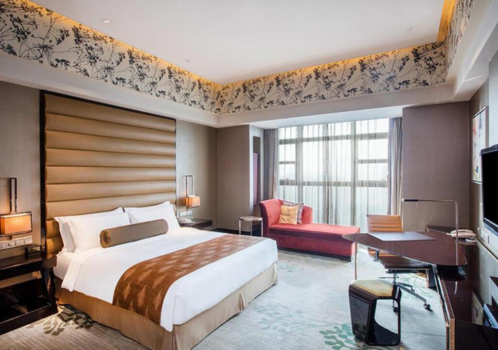 合肥皇冠假日酒店典雅而舒適的客房配有迷你吧、冰箱和熨燙設(shè)施。