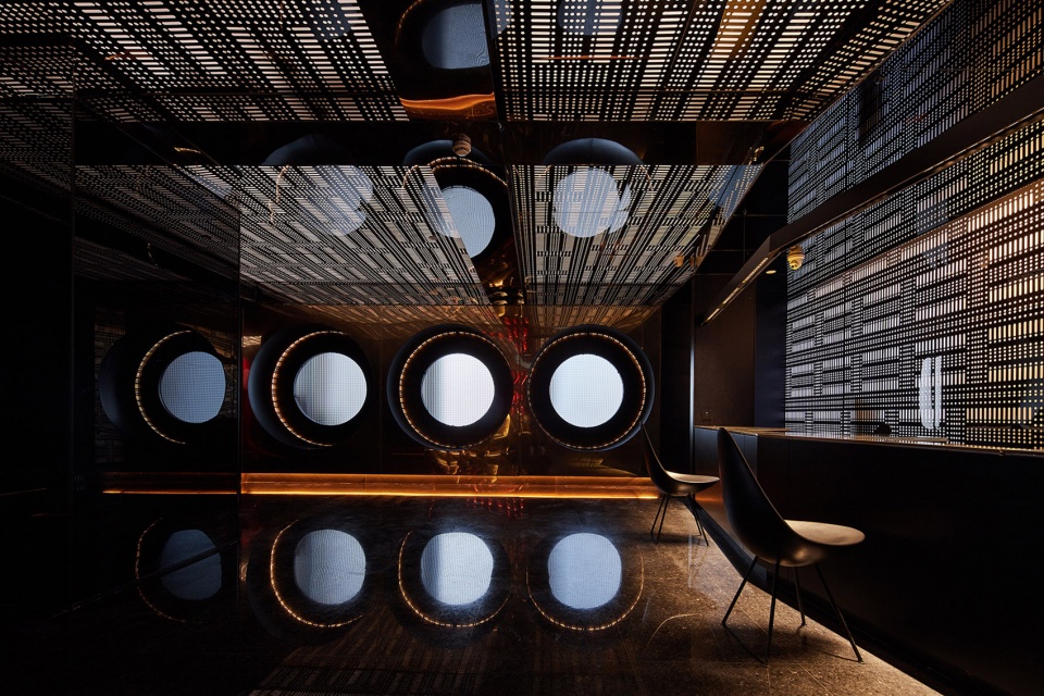 酒店大堂接待處部分,半透明窗洞賦予空間神秘感和興趣感。