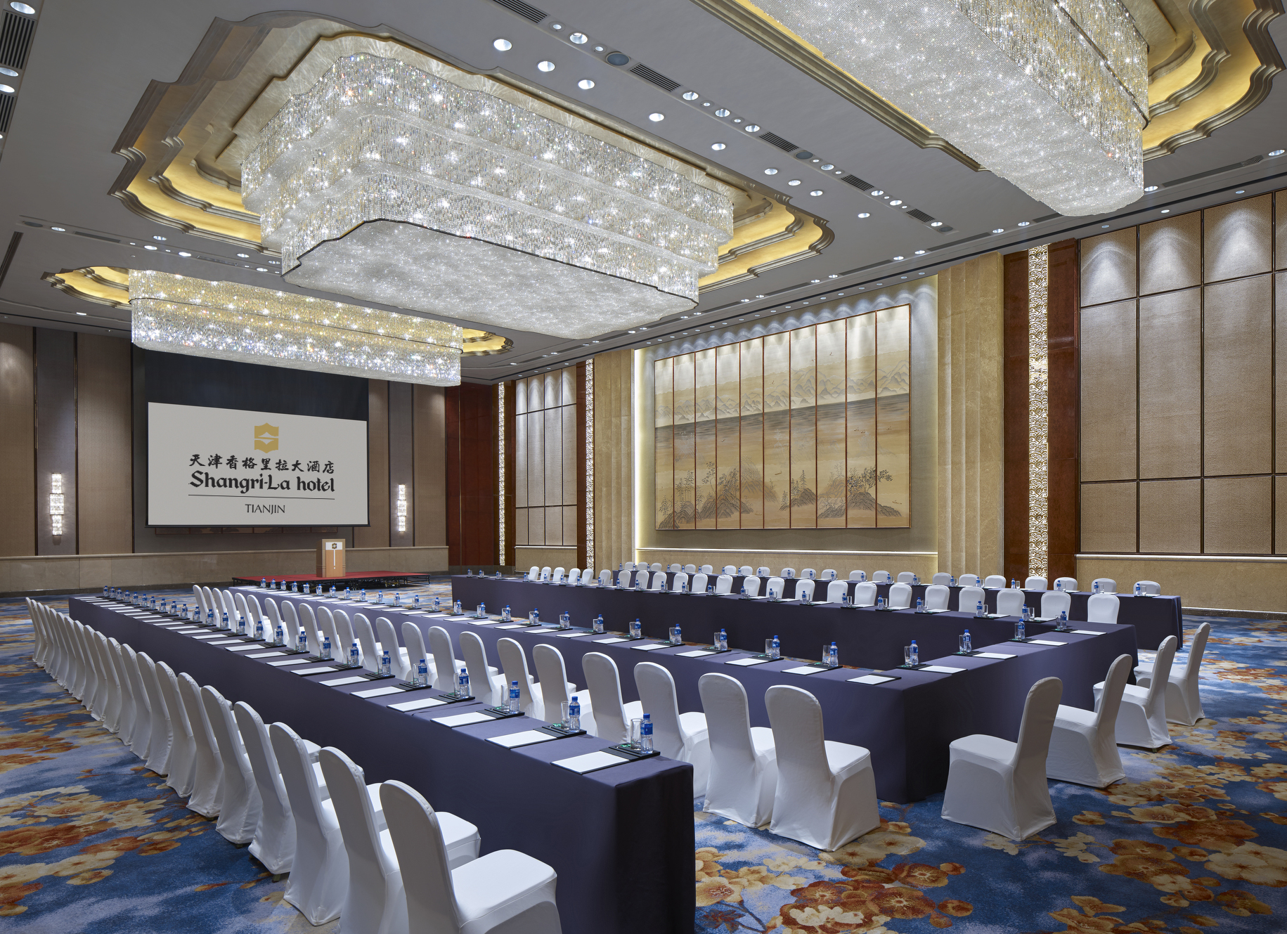 面積達1956平方米的無柱式大宴會廳可容納1700人,輔以面積為380平方米的小會議廳,其前廳連接寬敞明亮的戶外露臺,可將天津的旖旎風(fēng)光和海河美景一覽無遺。
