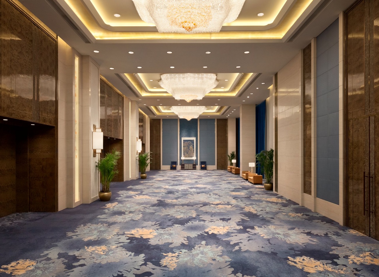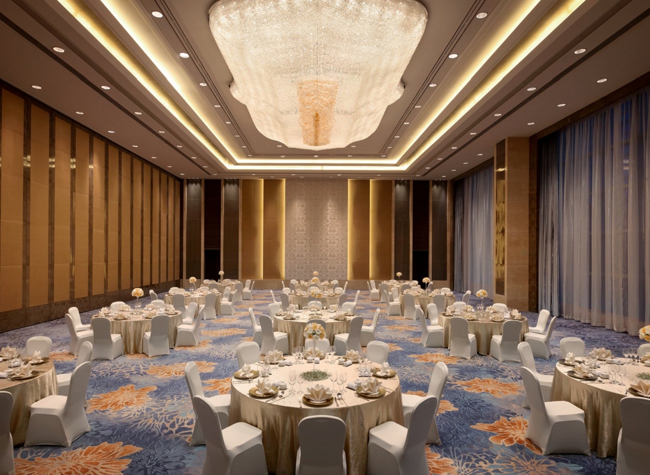 酒店擁有市中心規(guī)模宏大的1,400平方米的香格里拉宴會廳,7.5米高的全場無柱式建筑,可容納900人同時(shí)享用晚餐。