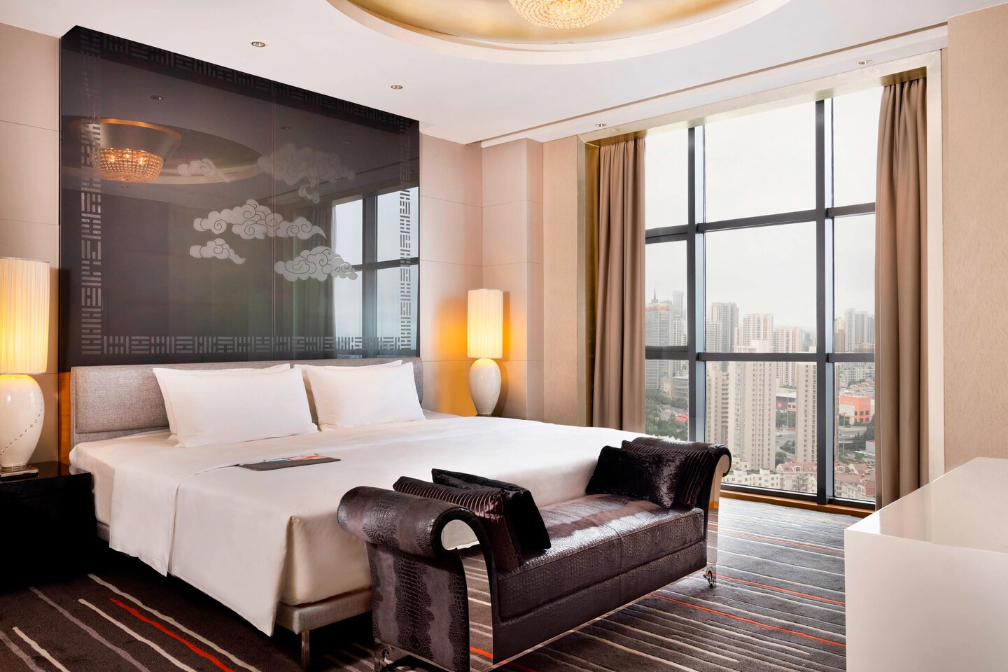 酒店客房寬敞迷人,為賓客在青島提供了一處寧?kù)o的休閑之所,客房時(shí)尚寧?kù)o,配備豪華床品、雨林淋浴間、高速 Wi-Fi 以及可俯瞰青島市景的落地窗。