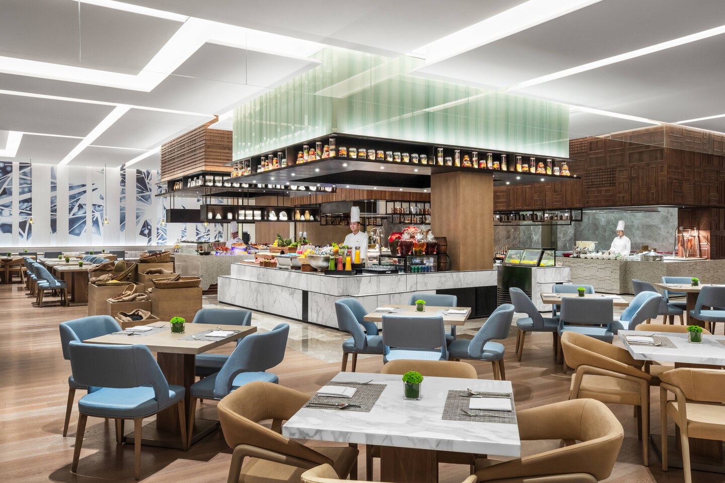 酒店內(nèi)設(shè)萬豪中餐廳,以優(yōu)選食材烹制出當(dāng)?shù)睾贾莓?dāng)?shù)靥厣穗燃捌渌牢吨惺矫朗场?br/>
