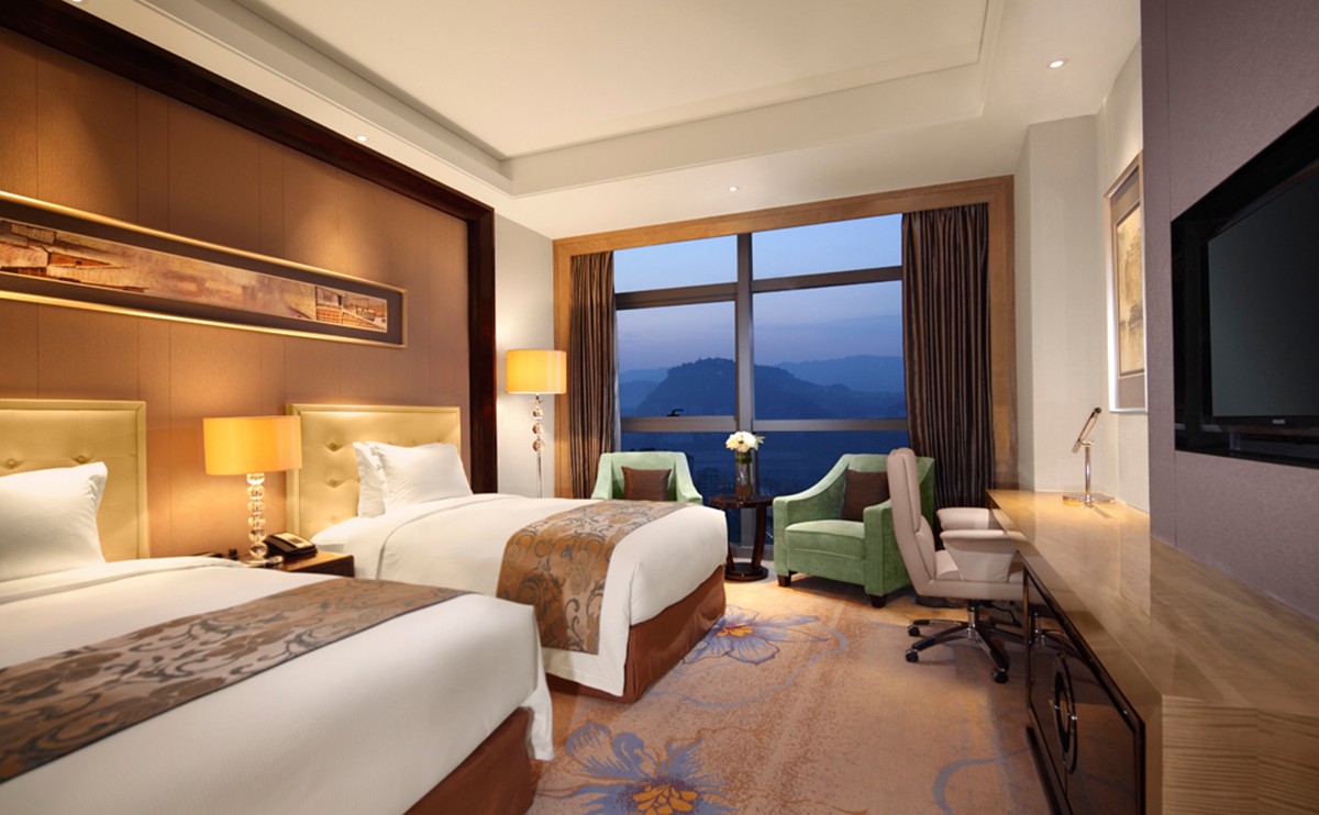 酒店共有243間客房,賓客可以享受舒適的設(shè)施,寬敞的工作區(qū),高速無(wú)線網(wǎng)絡(luò)接入,高品質(zhì)室內(nèi)用品以及透過(guò)全景落地窗欣賞到的山和長(zhǎng)江美景。