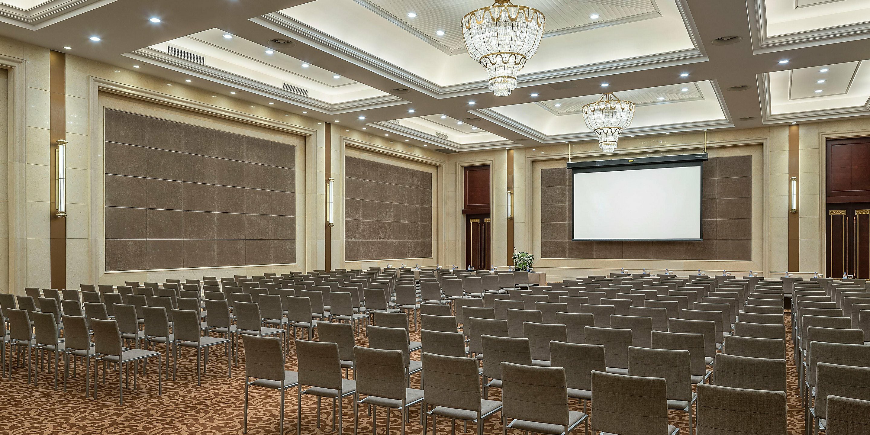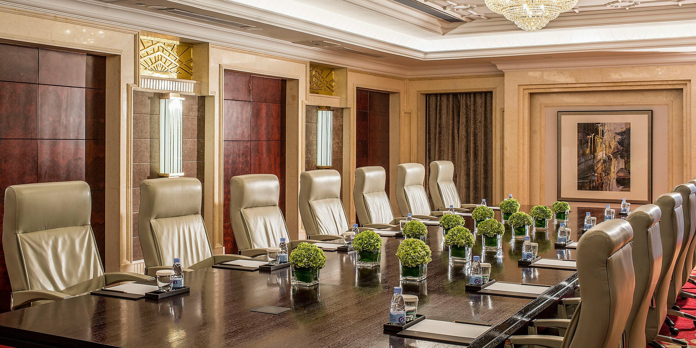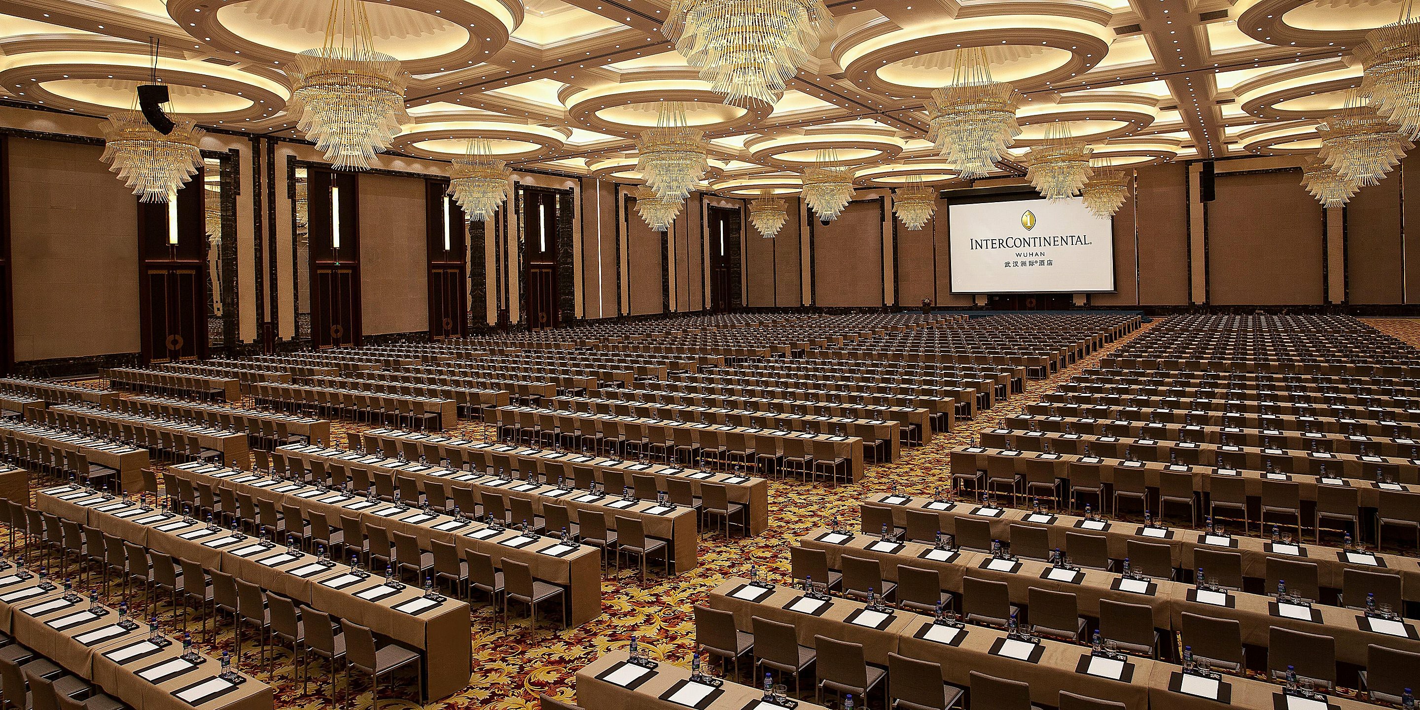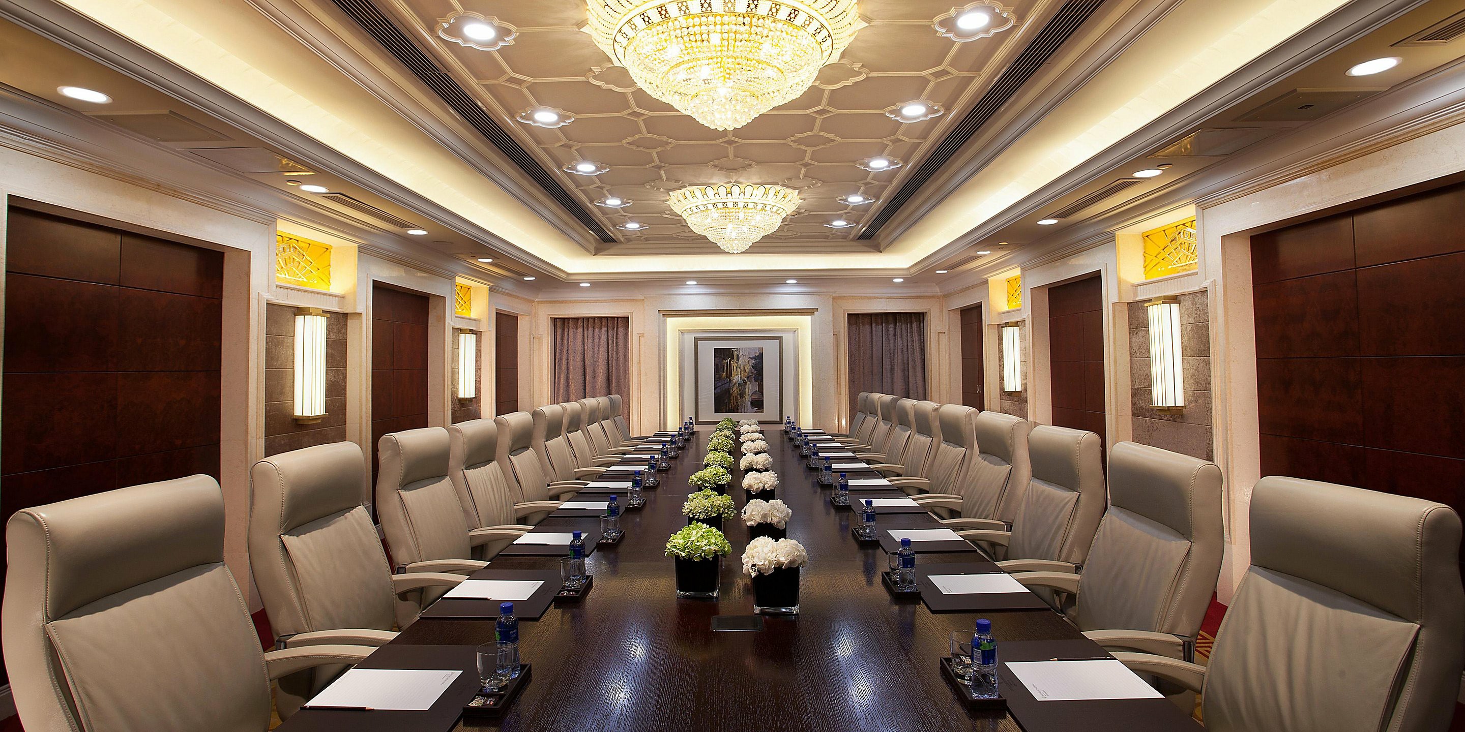 武漢洲際酒店會(huì)議室體現(xiàn)了優(yōu)雅裝飾與現(xiàn)代科技的完美結(jié)合。