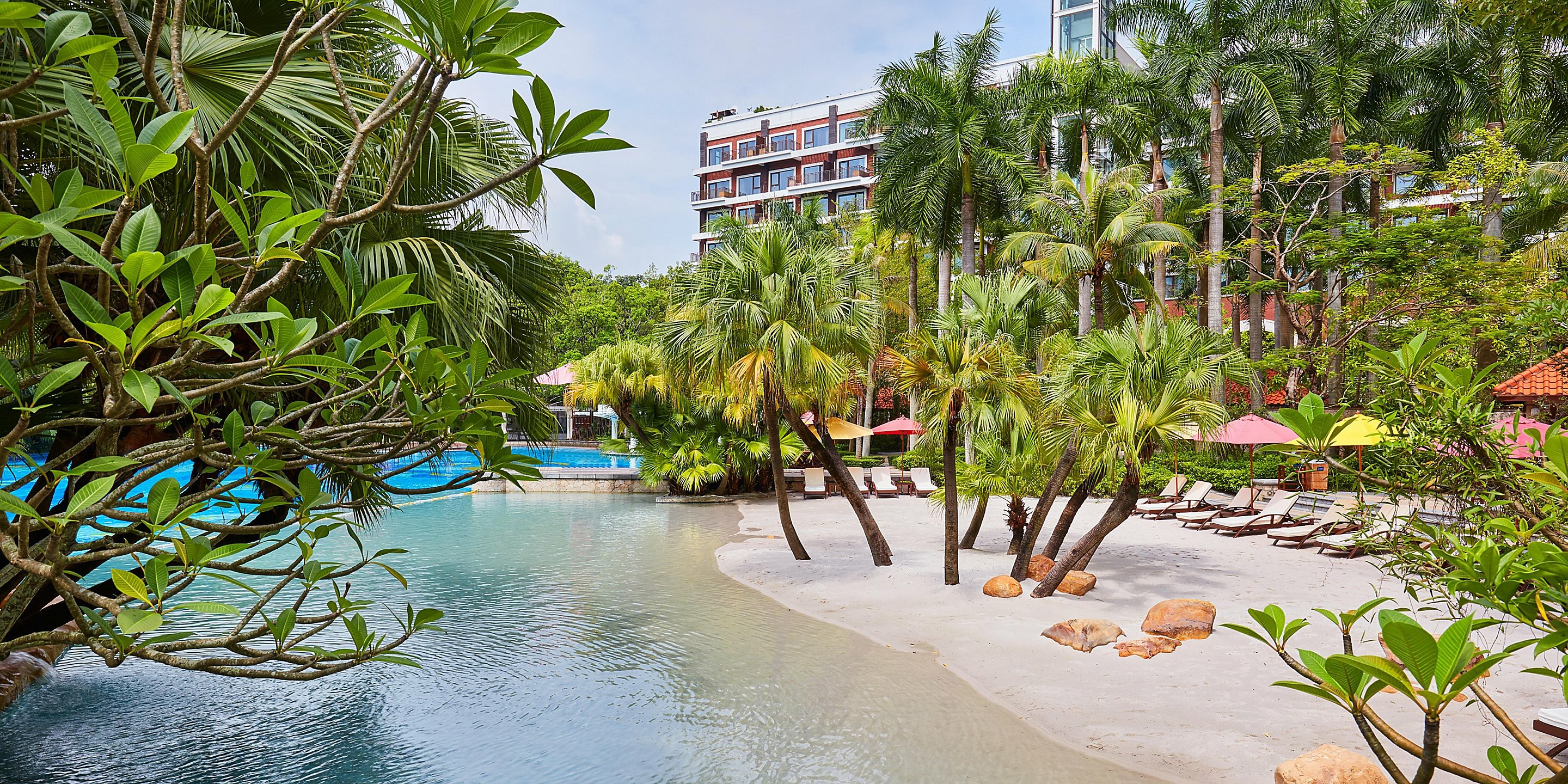 10000平方米的加勒比海式花園中,擁有人造沙灘和2000平方米的戶外泳池。