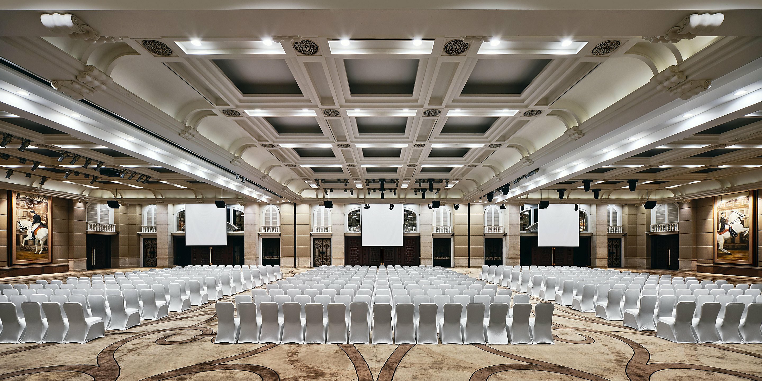 功能完善的宴會(huì)設(shè)施均位于酒店一層,其中1560平方米的無(wú)柱西班牙大宴會(huì)廳挑高7.5米,大氣磅礴,并配備超寬自動(dòng)坡式入口。