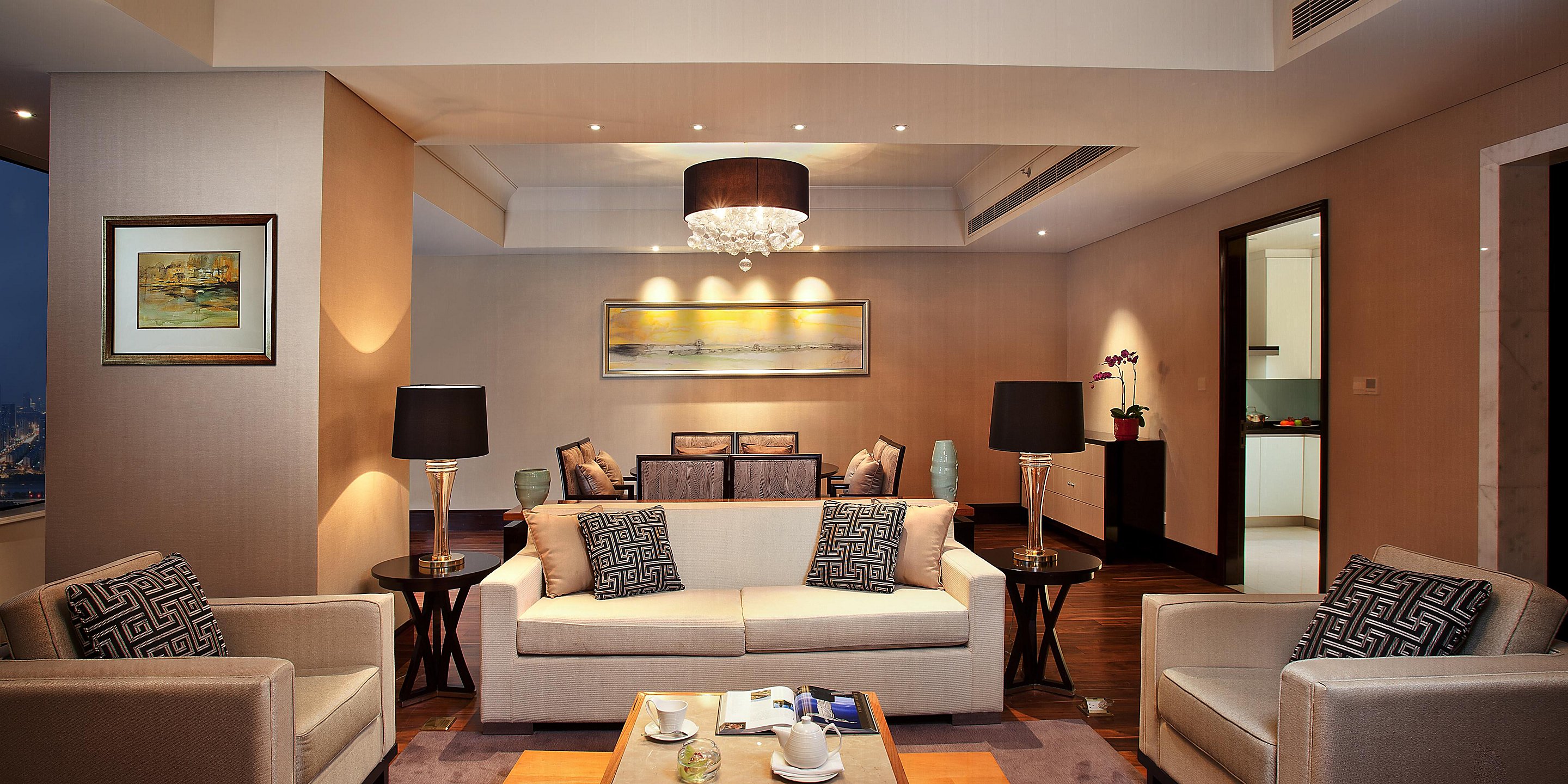 套房面積70-400平米,配套設(shè)施包括獨(dú)立空調(diào)、42寸液晶屏衛(wèi)星電視、高速有線及無(wú)終寬帶。