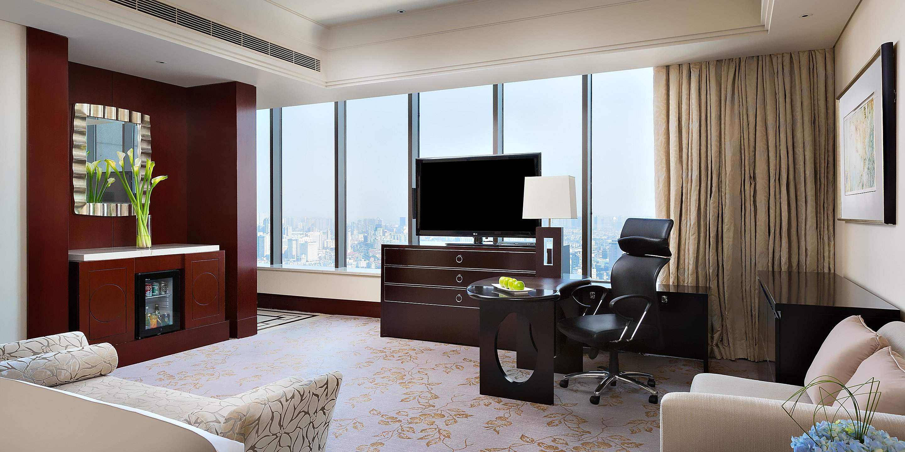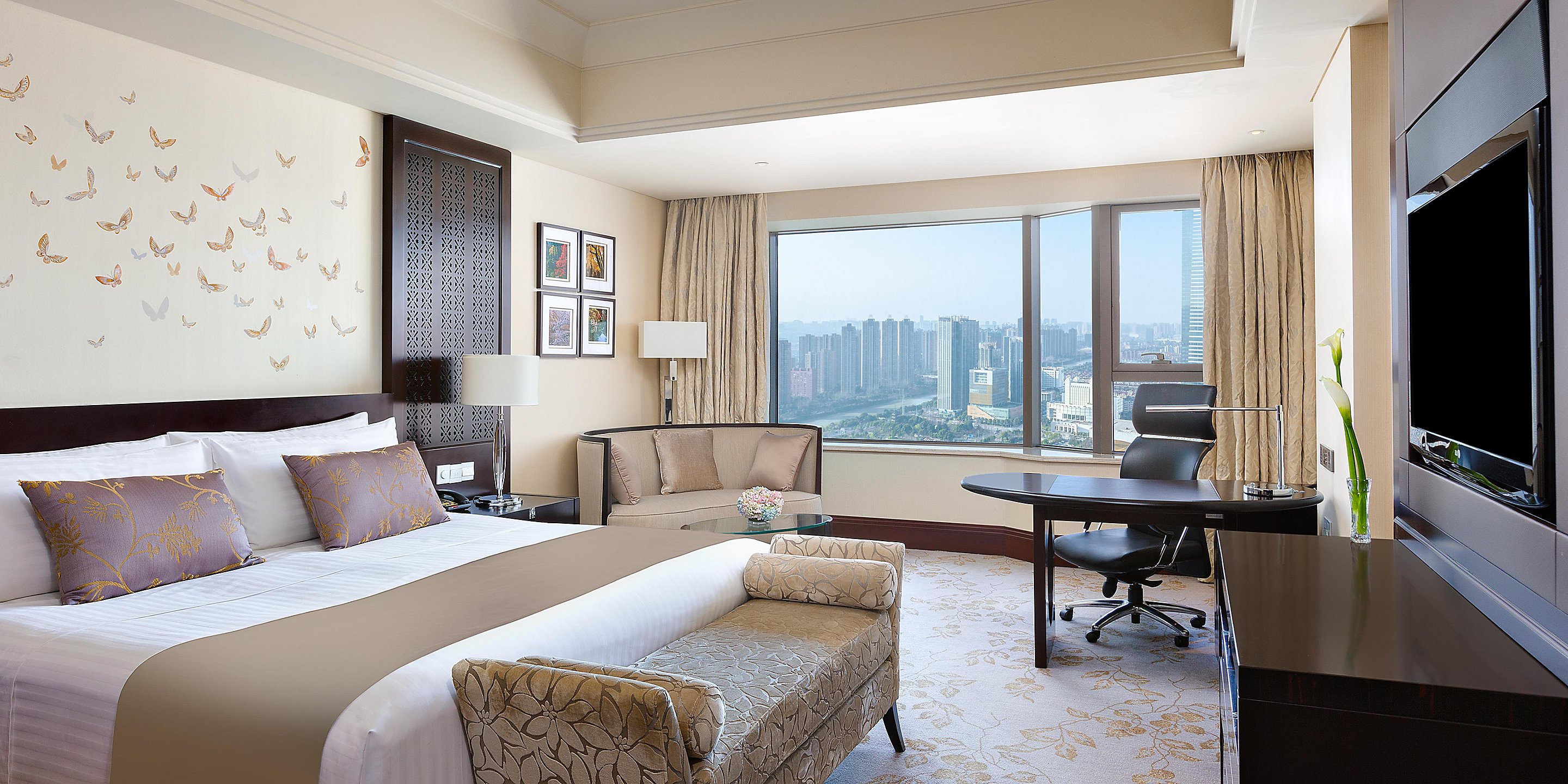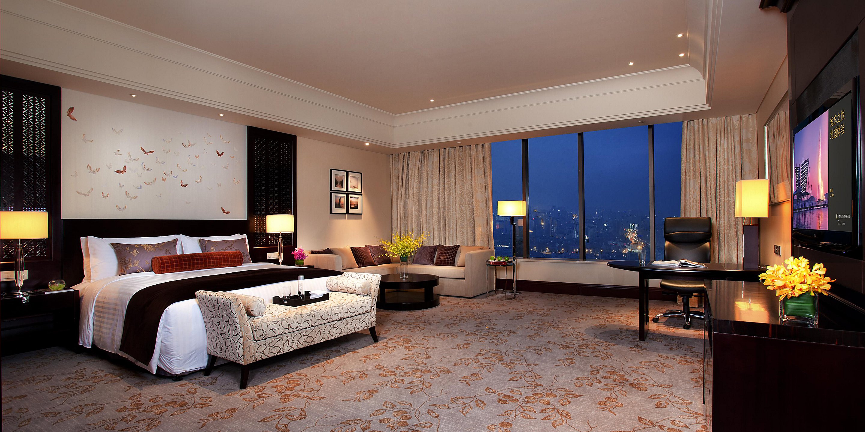 寬敞、高雅的套房配合全落地玻璃窗,可以俯瞰無(wú)錫城市景觀和京杭大運(yùn)河美景。