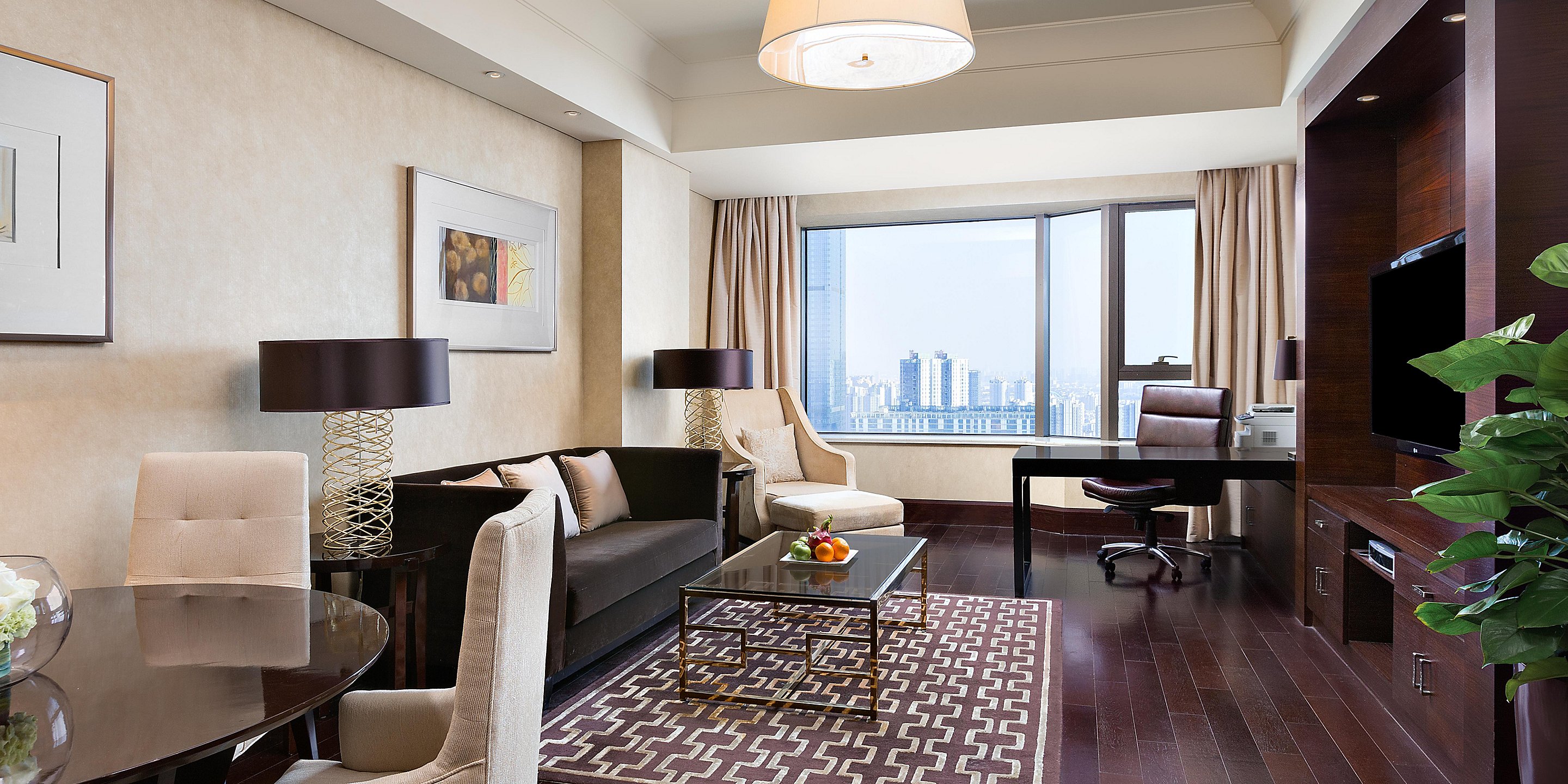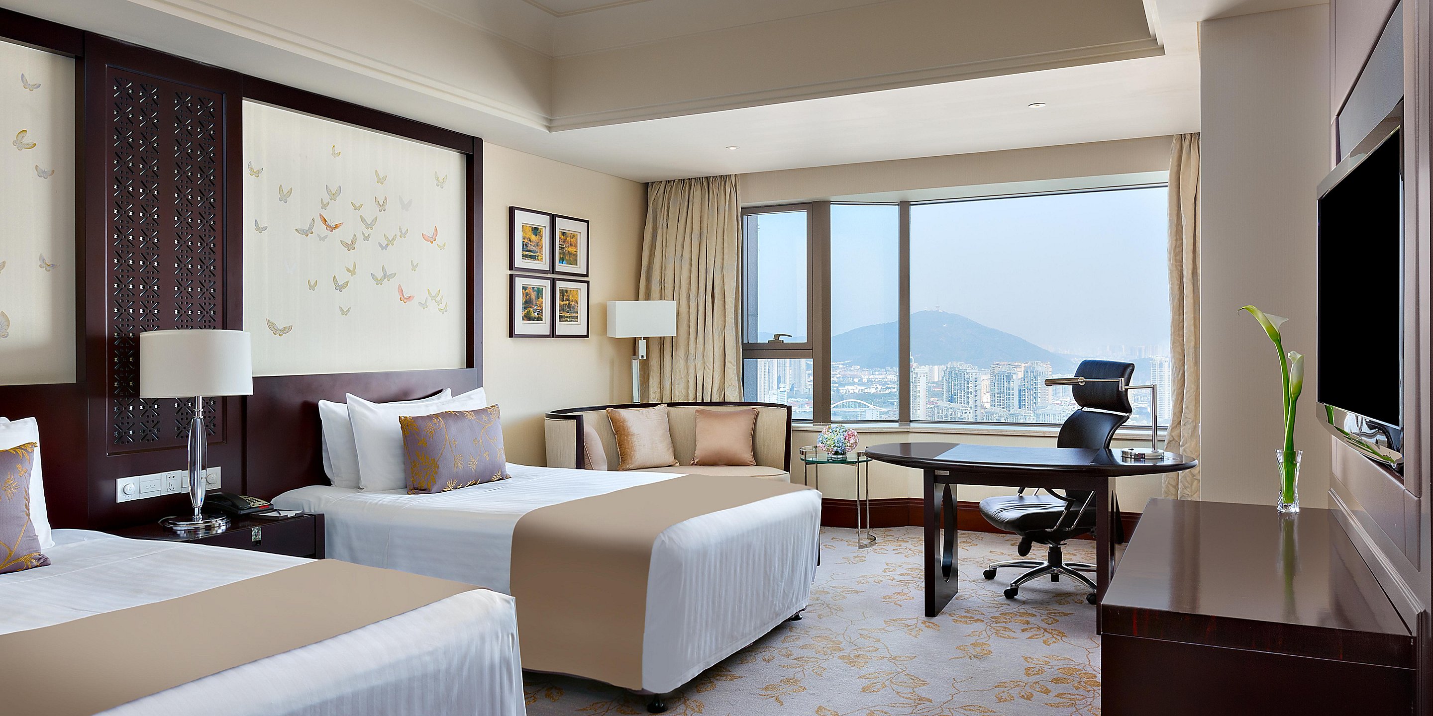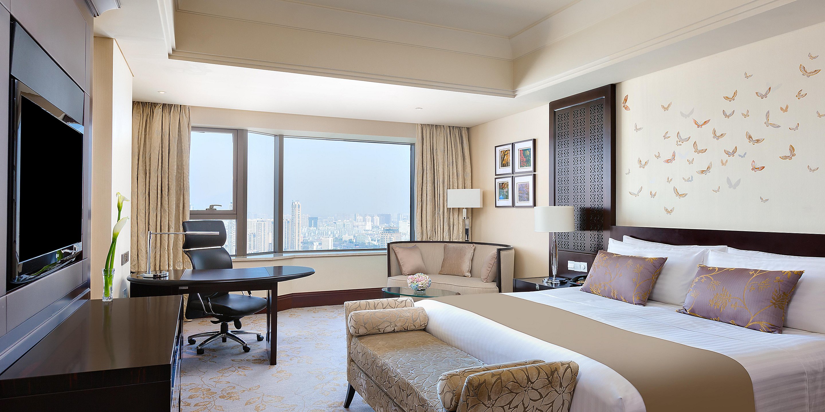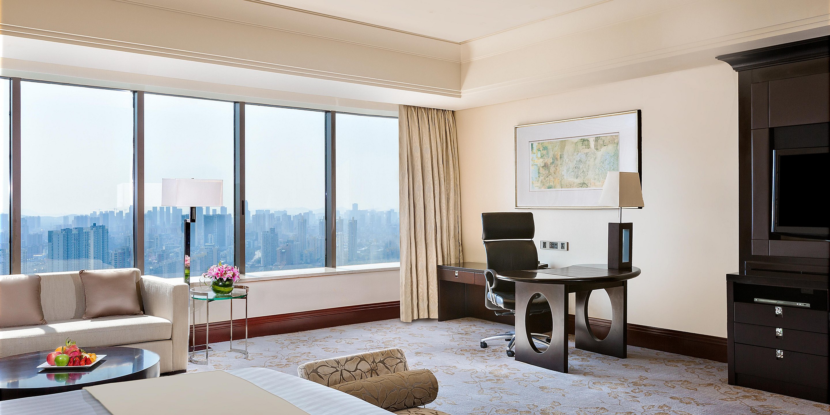 寬敞、高雅的套房配合全落地玻璃窗,可以俯瞰無(wú)錫城市景觀和京杭大運(yùn)河美景。
