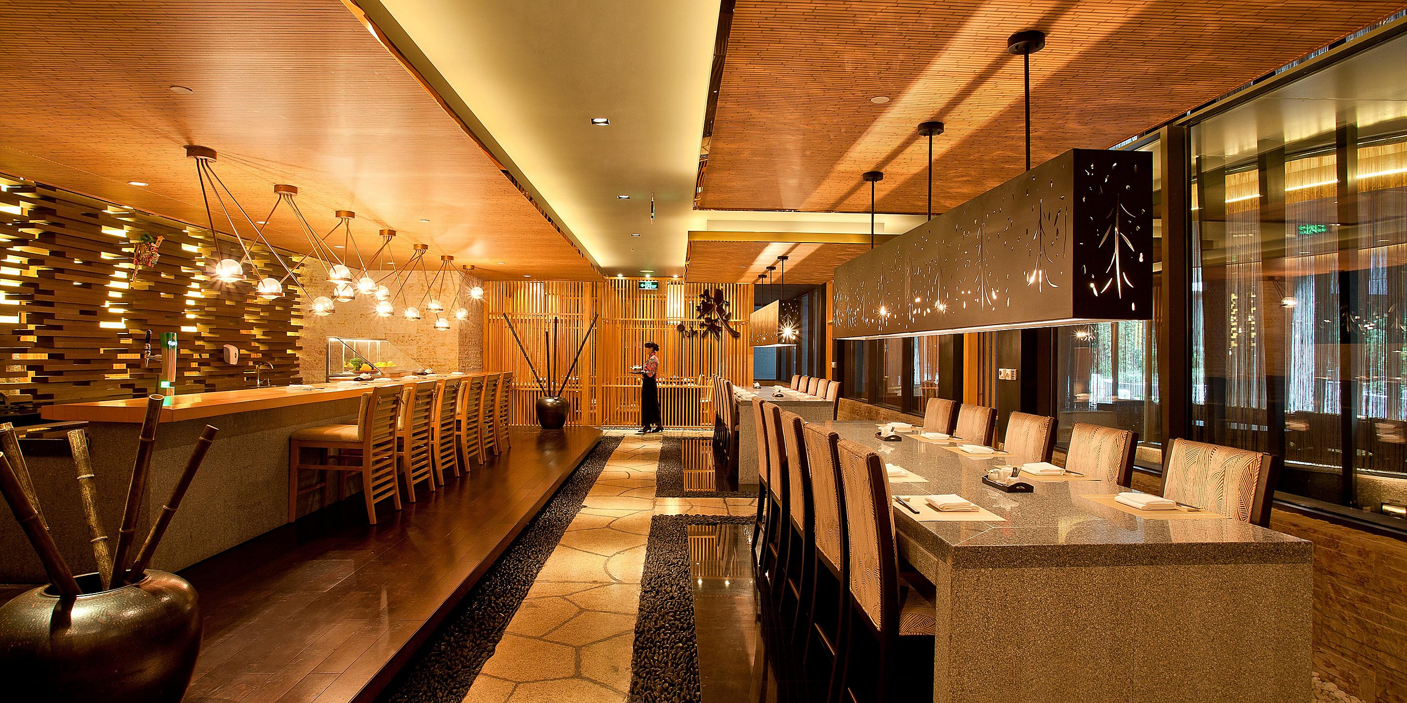 獨(dú)立榻榻米鐵板燒區(qū)域、半私密木柵隔斷區(qū)的用餐環(huán)境讓您更添用餐情趣。