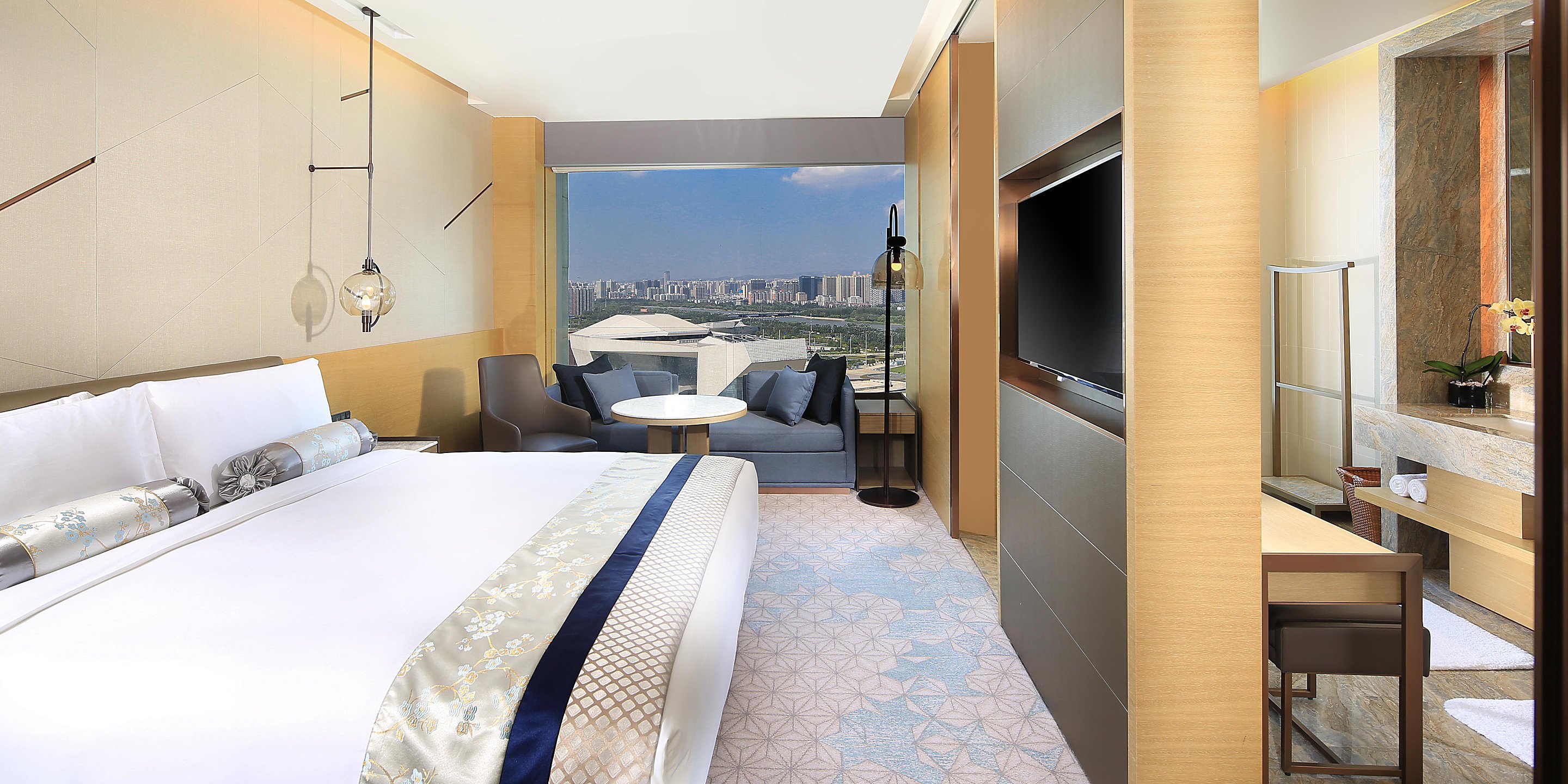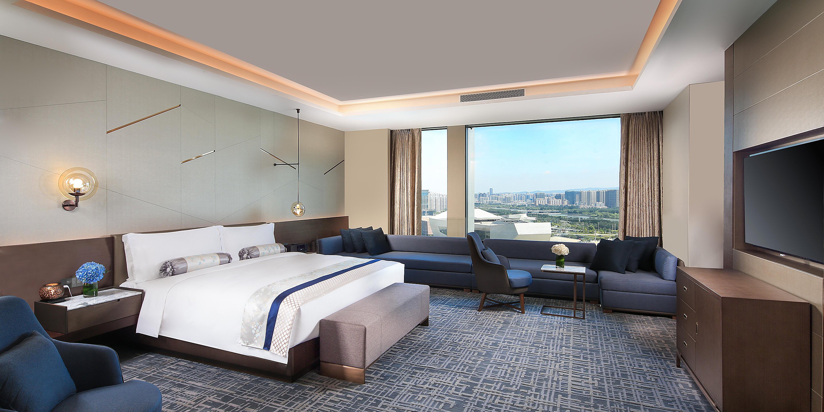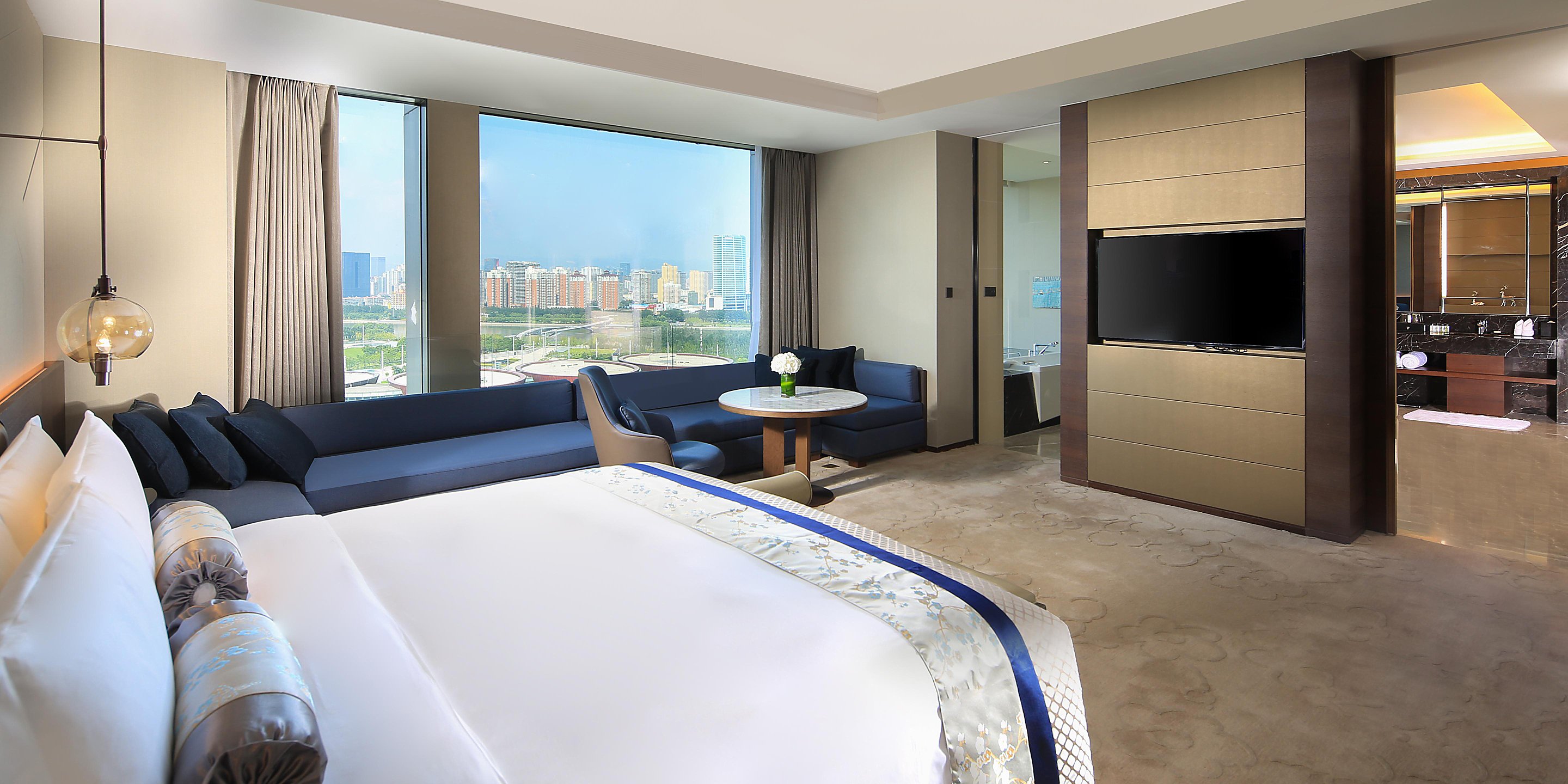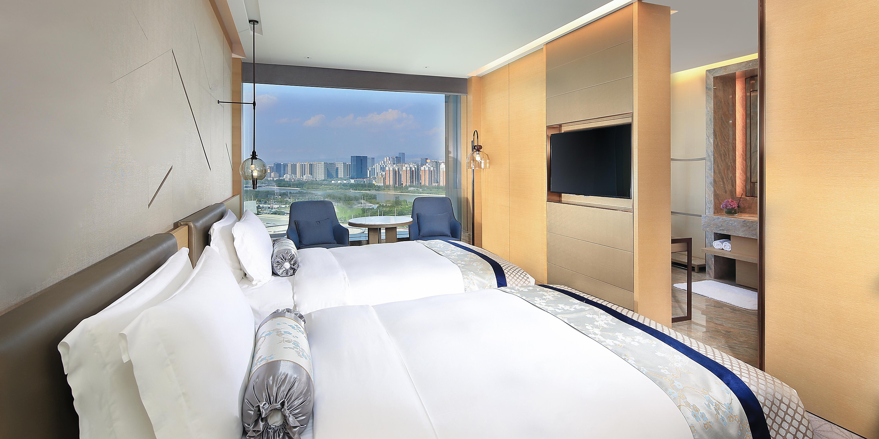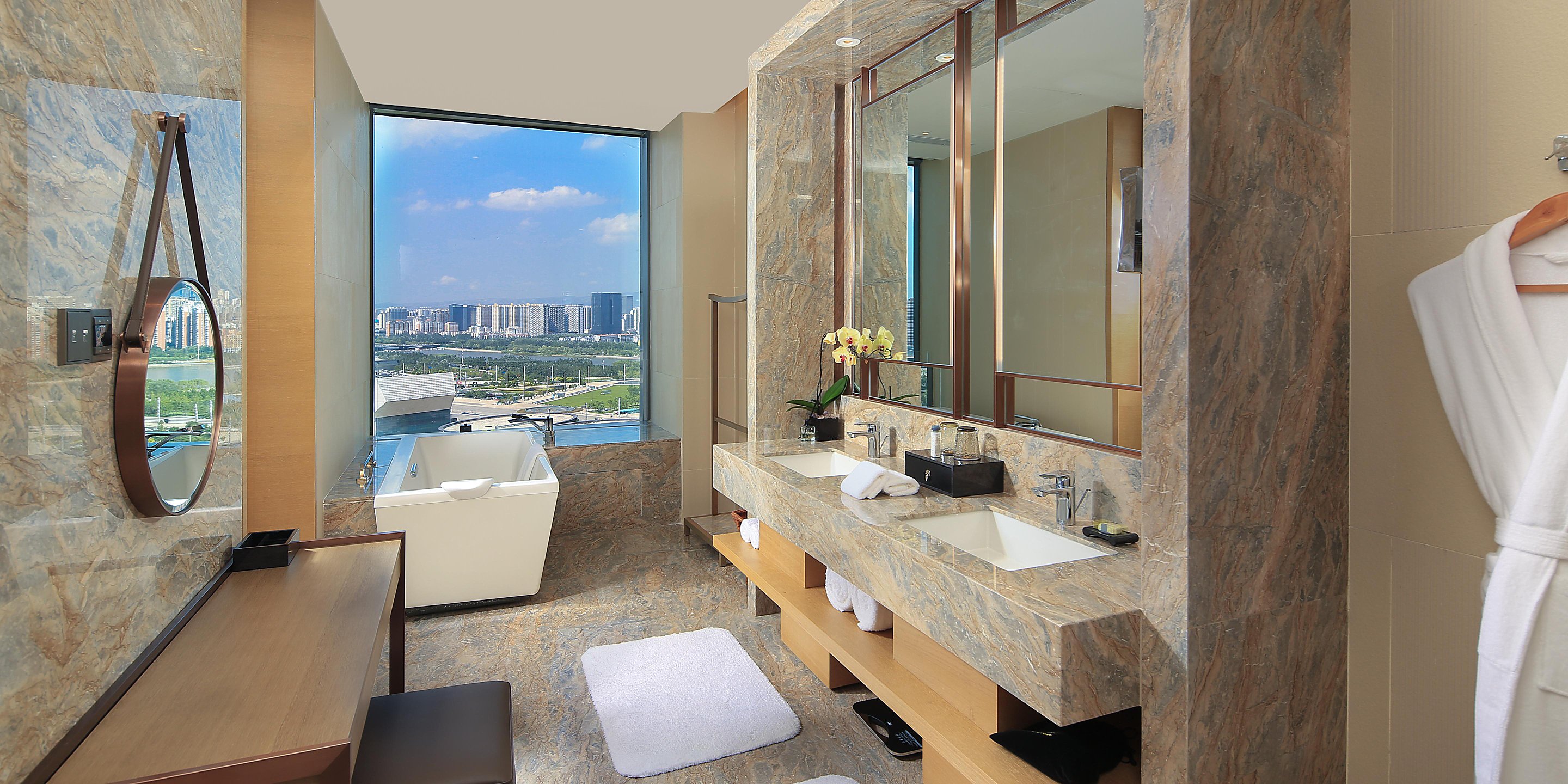 酒店所有客房及套房,每間房間的空間都很充足,擁有獨立衛(wèi)生間,落地窗的設計,可以讓賓客對酒店周邊的美景一覽無余。