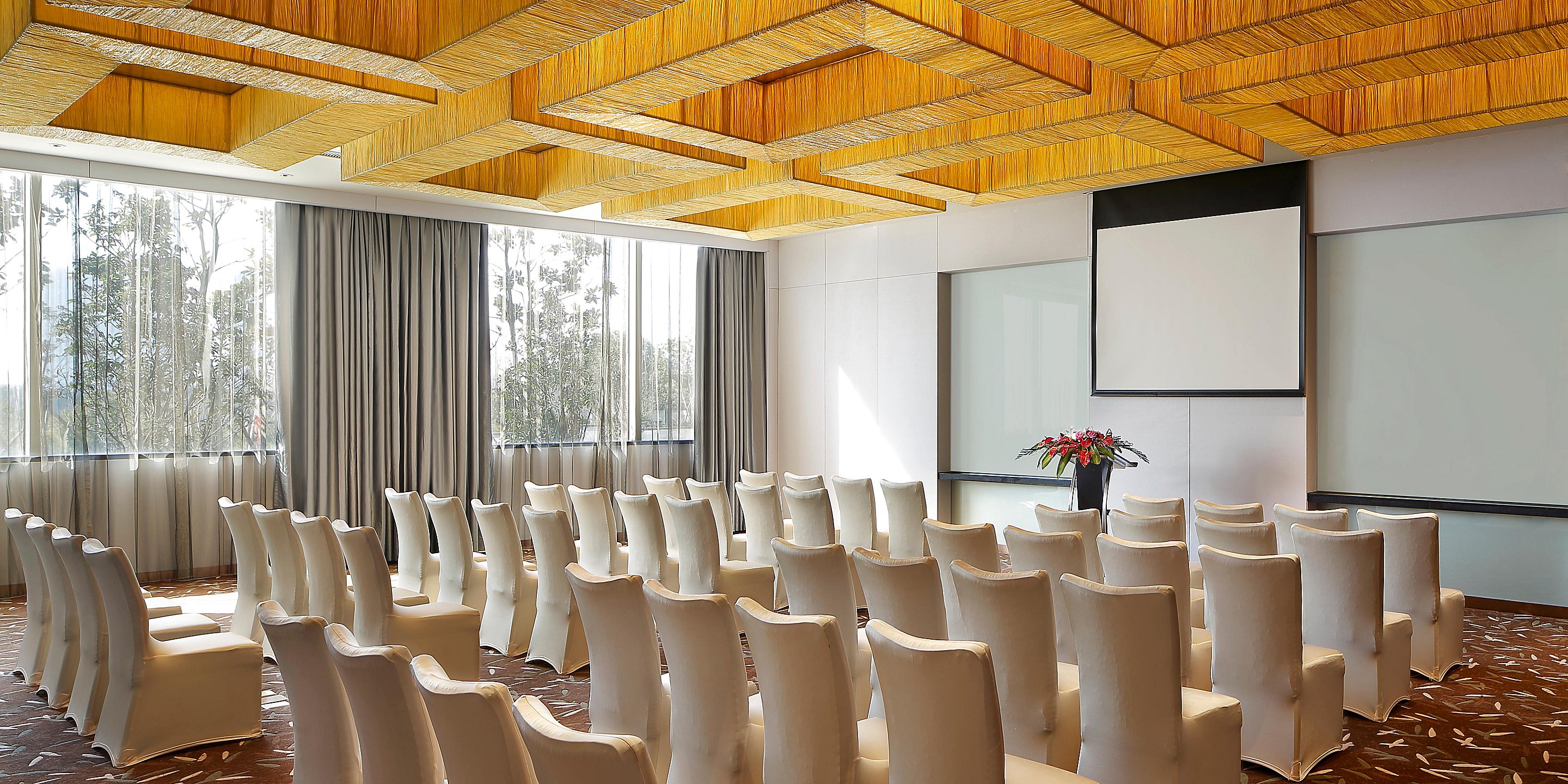 酒店擁有兩個980平方米的多功能宴會廳,大型會議結(jié)束后,無需等待即可用餐,成功實現(xiàn)了會議與用餐之間的無縫銜接。