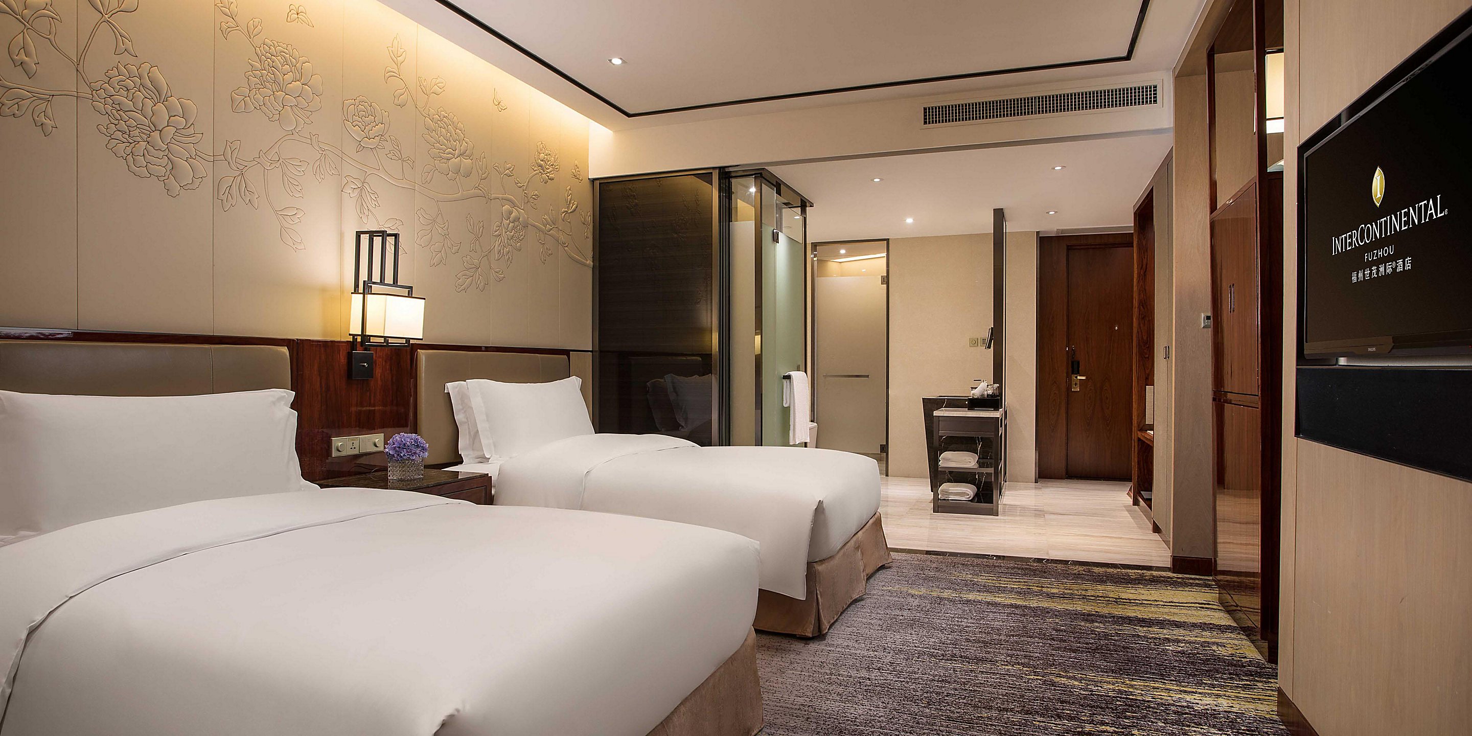 營造愉悅和舒心的入住感受始終是洲際酒店關注的焦點,寬闊客房空間,高速寬帶上網、42英寸液晶電視、國際衛(wèi)星頻道、辦公區(qū)域、客房內保險箱和迷你酒吧,細微之處無不盡顯體貼??头康脑∈覄t采用玻璃墻體,獨立的淋浴和浴制缸。