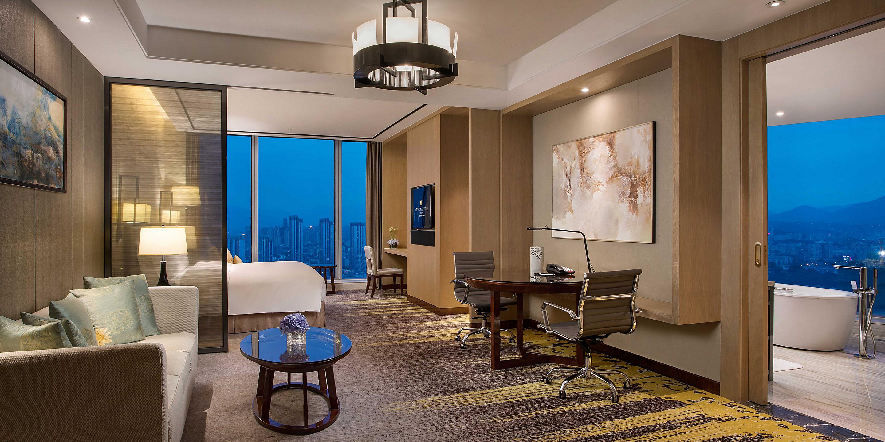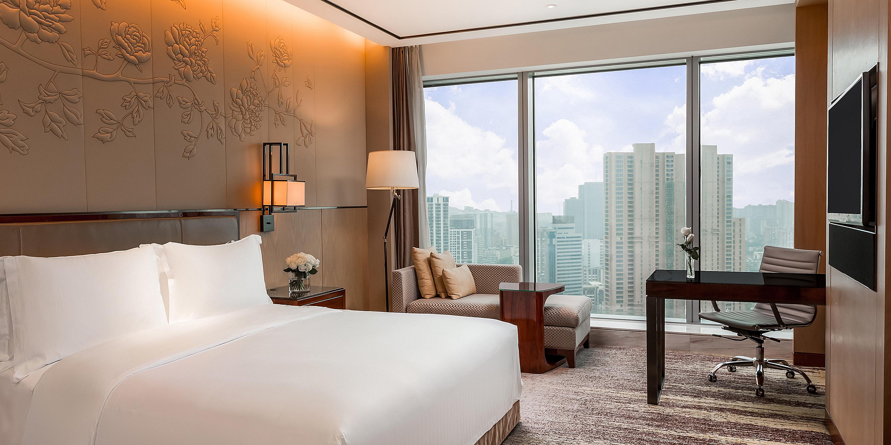 所有酒店客房位于20層至33層,均擁有躍動的城市風景,從豪華舒適的客房向外望去,美麗的福州城景盡收眼底。