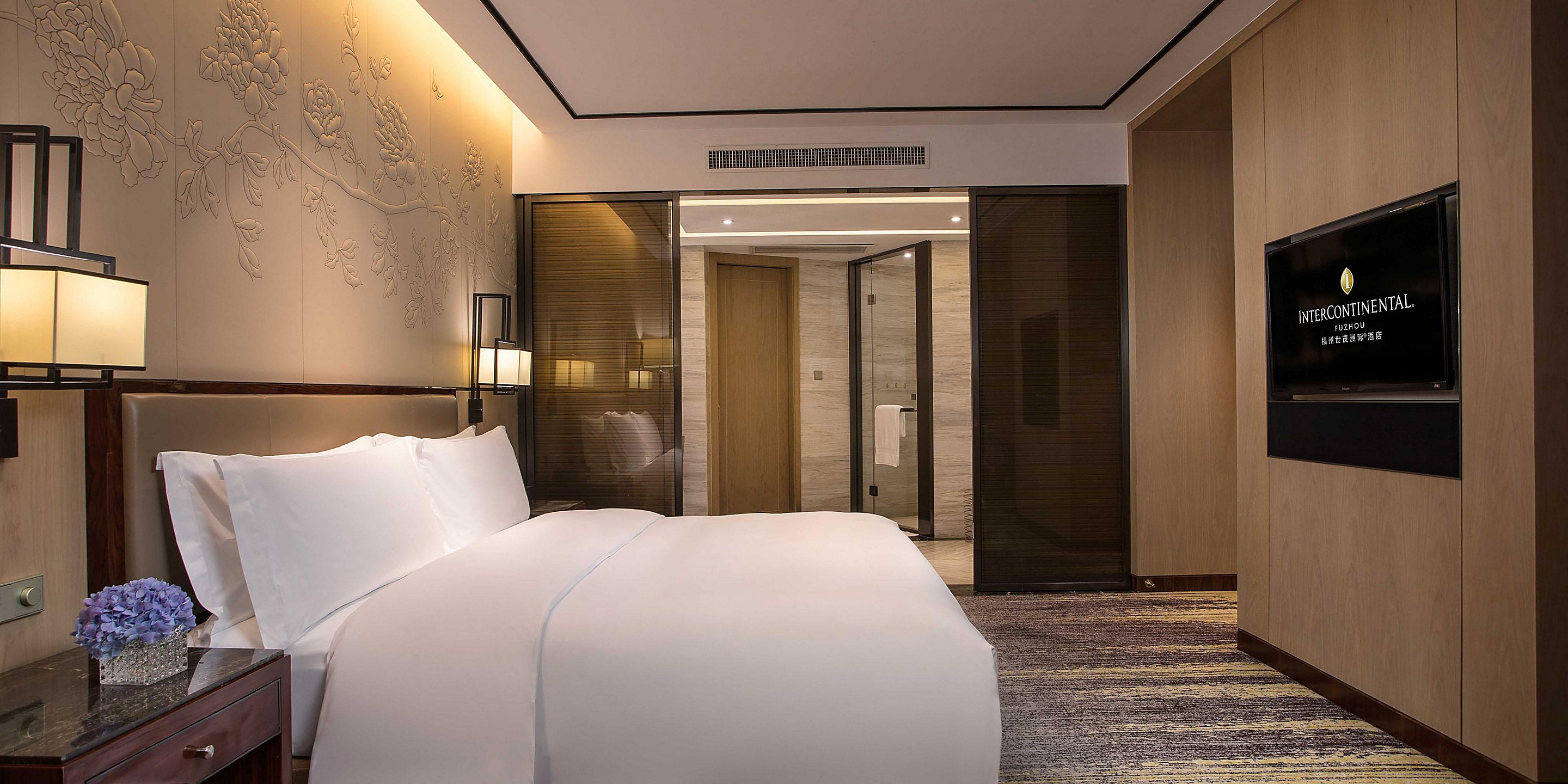 福州世茂洲際酒店建筑樓高58層,優(yōu)越的地理位置和獨特的建筑風格,讓酒店每間客房均擁有優(yōu)越的觀景視角,寬大的落地窗可一覽福州秀美的城景。