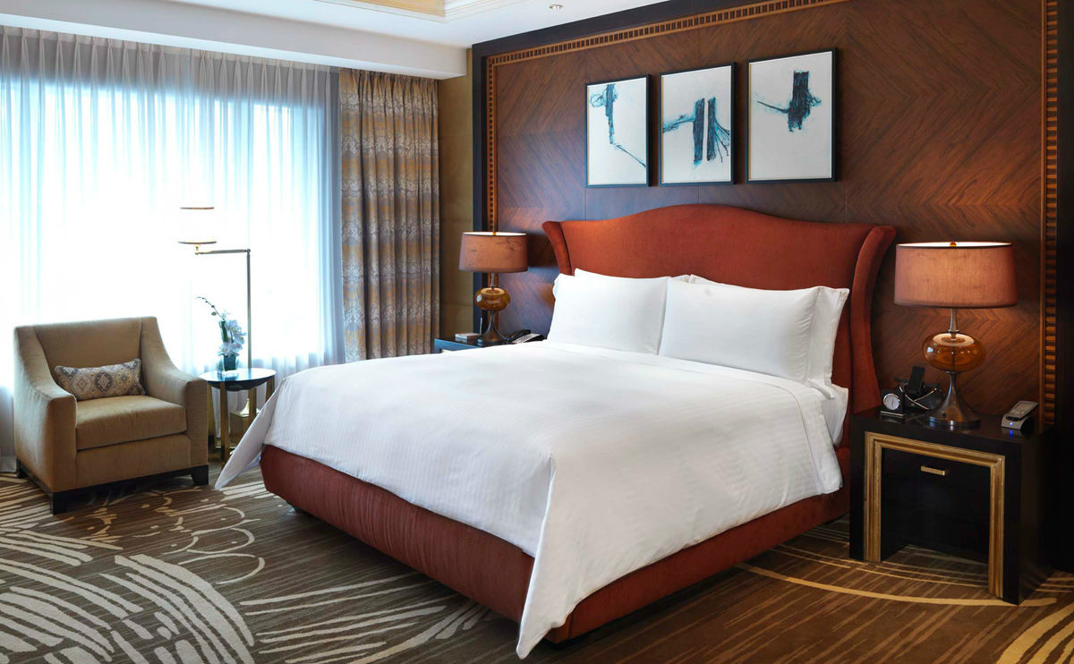 客房及套房設(shè)備極盡時(shí)尚氣派,可俯瞰路氹金光大道。您可以在大理石浴室的獨(dú)立式浴缸內(nèi)洗去疲憊,或舒適的特大睡床一夜酣睡。