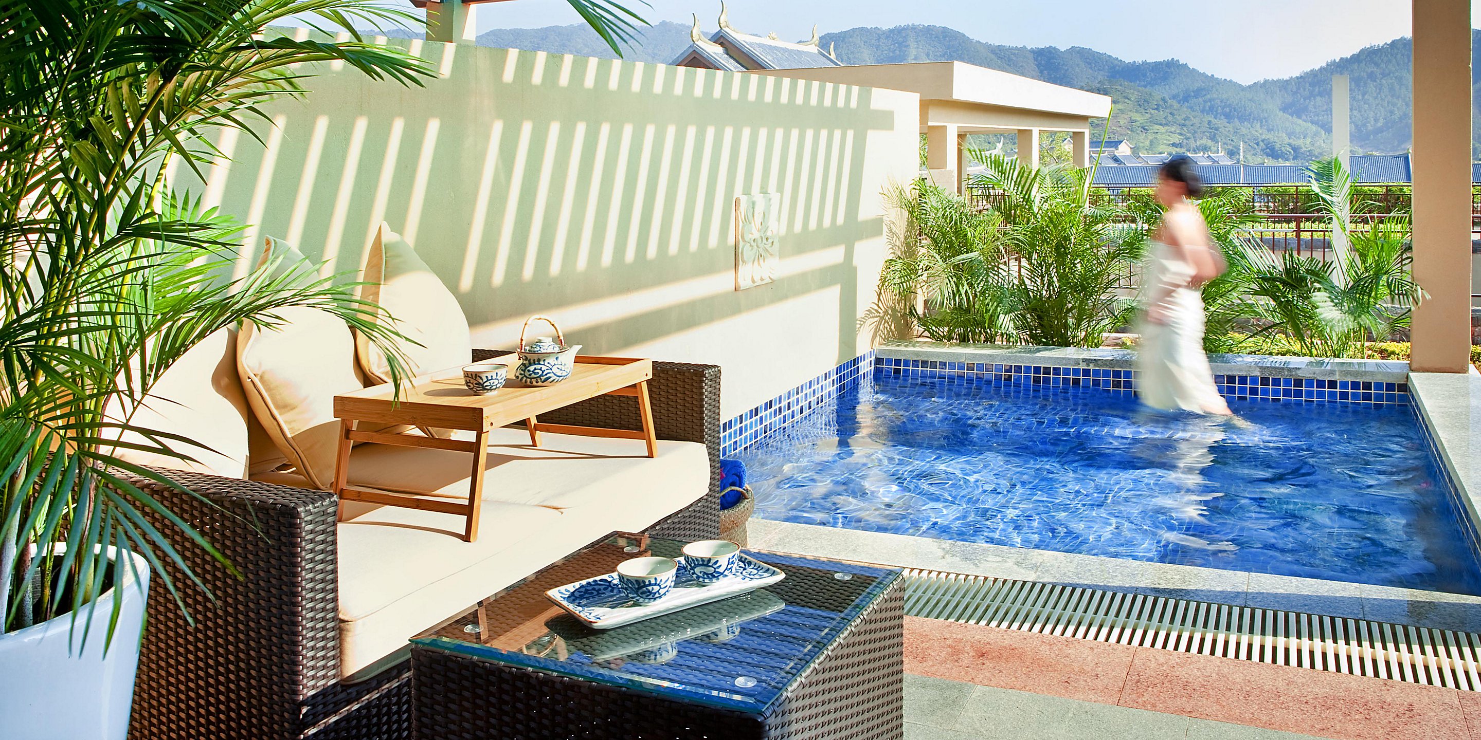 別墅區(qū)域設(shè)有1-3間臥室,其設(shè)計風(fēng)格完關(guān)融合了中國古典建筑和現(xiàn)代建筑風(fēng)格,所有房間配有專屬私人管家、專用溫泉泡池及休息涼亭。