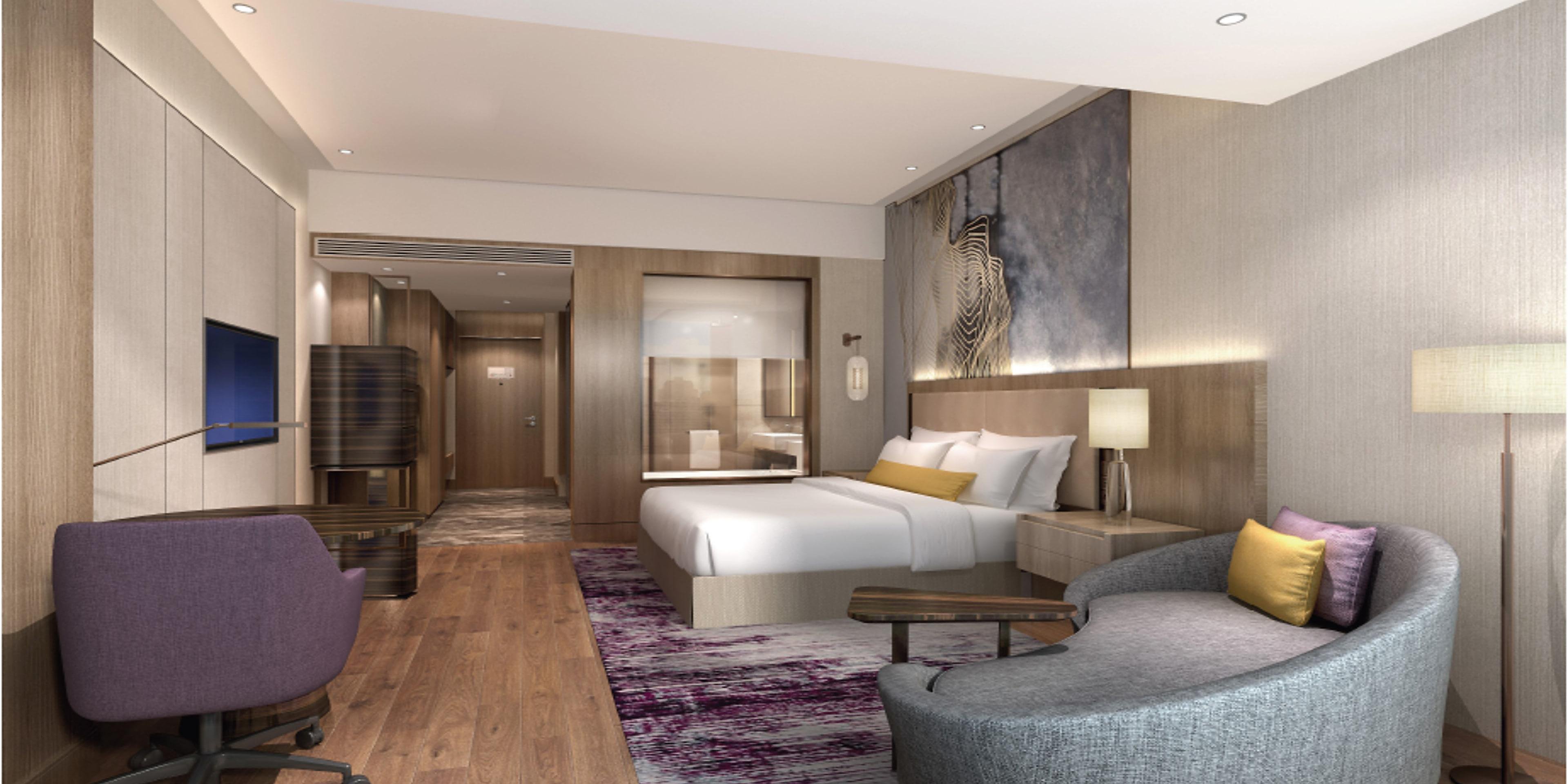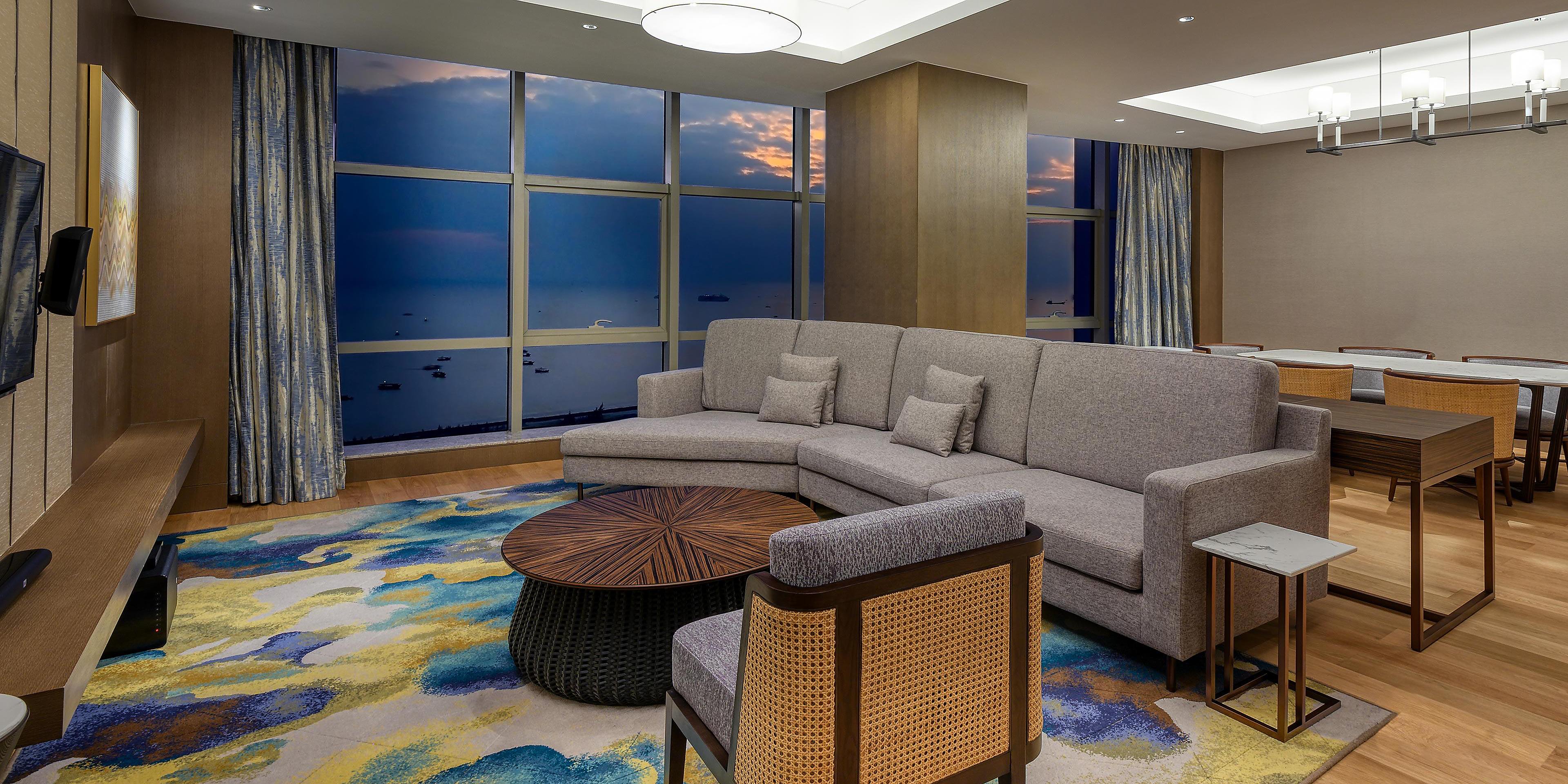 大堂酒廊寬敞明亮,舒適宜人,戶外區(qū)域擁有親水下沉式休閑平臺,四面碧水環(huán)繞,是小憩或洽談的理想場所。