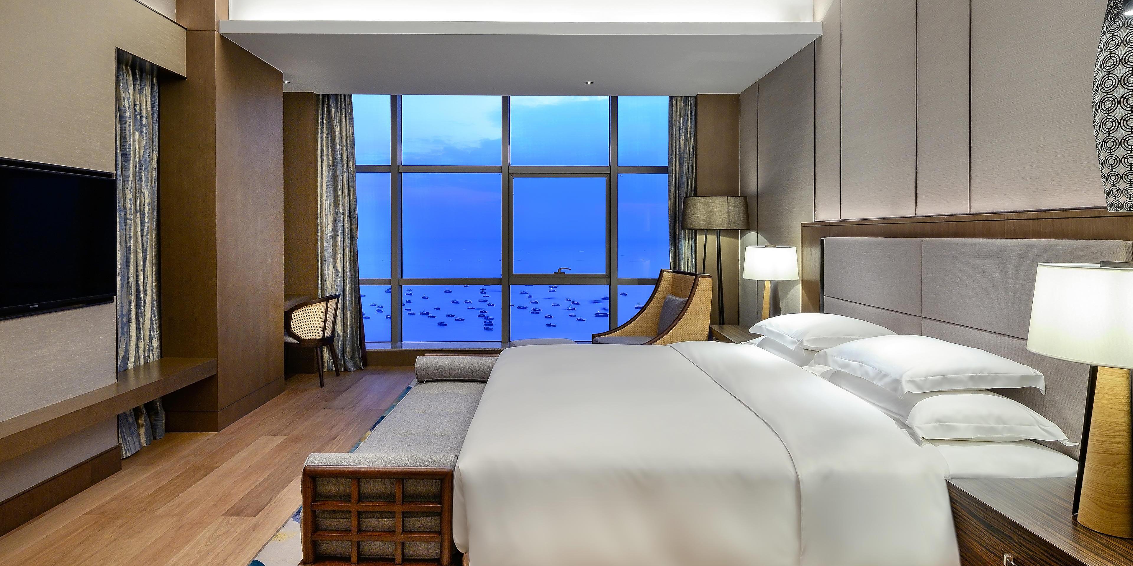 酒店的所有客房設(shè)備齊全,無線WIFI全面覆蓋,每個房間都擁有獨立的衛(wèi)浴間,落地窗的設(shè)計可以更好的將酒店周邊的美景一覽無余。