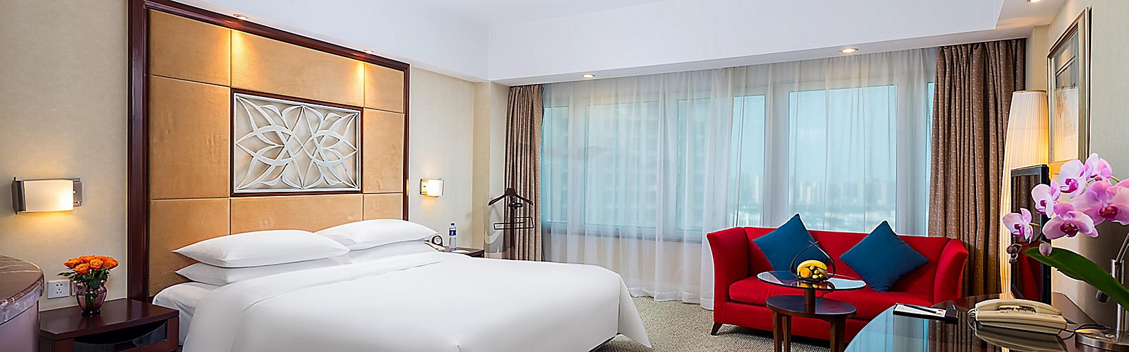 客房有334個(gè)平方,房間寬敞,室內(nèi)有獨(dú)立衛(wèi)生間和落地窗設(shè)計(jì),可以很好的觀賞酒店周邊的美景。